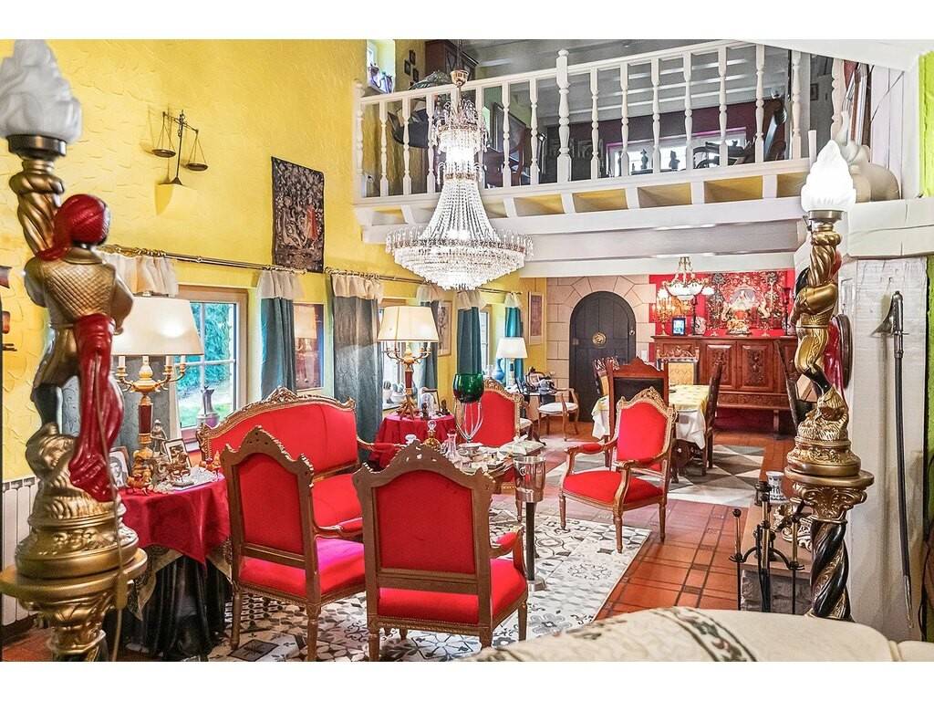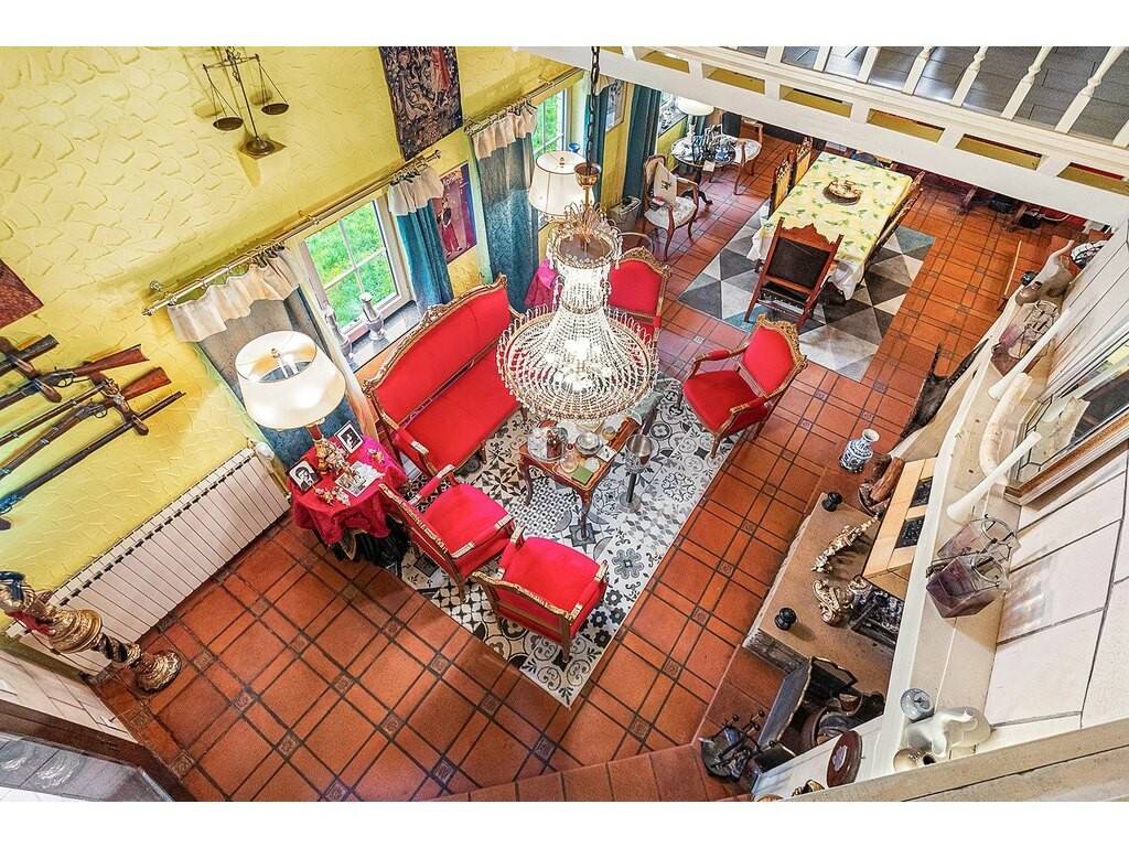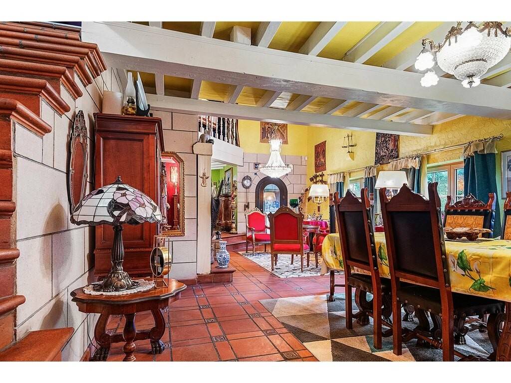 Au rez-de -chaussée un hall d’entrée de ± 20 m² donne accès à une vaste pièce de vie de ± 43 m² avec une cheminée ouverte, ainsi qu’à un séjour situé dans la partie tour de la maison de ± 28 m². Une cuisine séparée équipée de ± 10 m² avec buanderie attenante de ± 3 m². Une chambre de ± 17 m² avec sa salle d’eau privative de ± 4 m². Une cave à vin de ± 8 m², un WC séparé de ± 3 m², ainsi qu’un garage pour deux véhicules et un local technique complètent ce niveau.