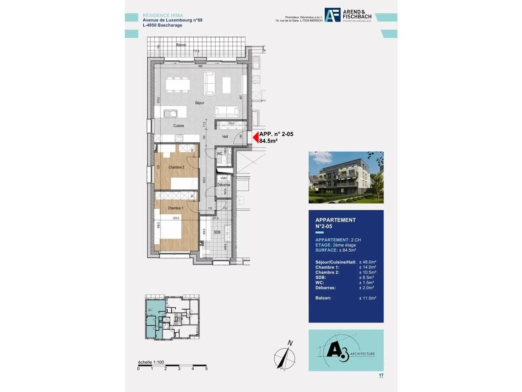 L'appartement 2-05 de 84,46m2 se compose comme suit: