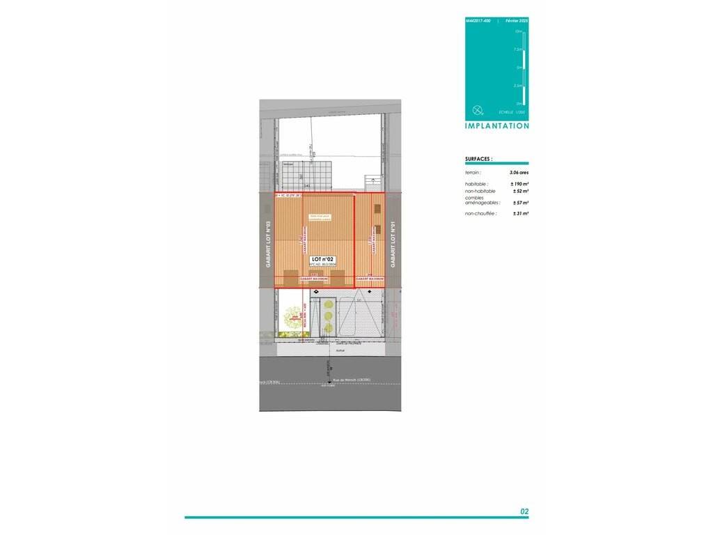 LOT 02: maison unifamiliale en bande sur un terrain de 3,06 ares avec une surface habitable de +/- 190 m2 et une surface totale de +/-330m2 comprenant: