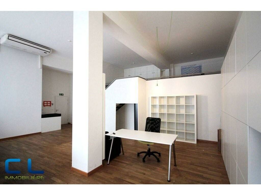 D'une surface de 116 m², le bien se compose d'un open space lumineux avec une hauteur sous plafond de 4 mètres, d'une mezzanine accueillant deux bureaux, d'une salle de réunion, d'une kitchenette ainsi que de deux WC.