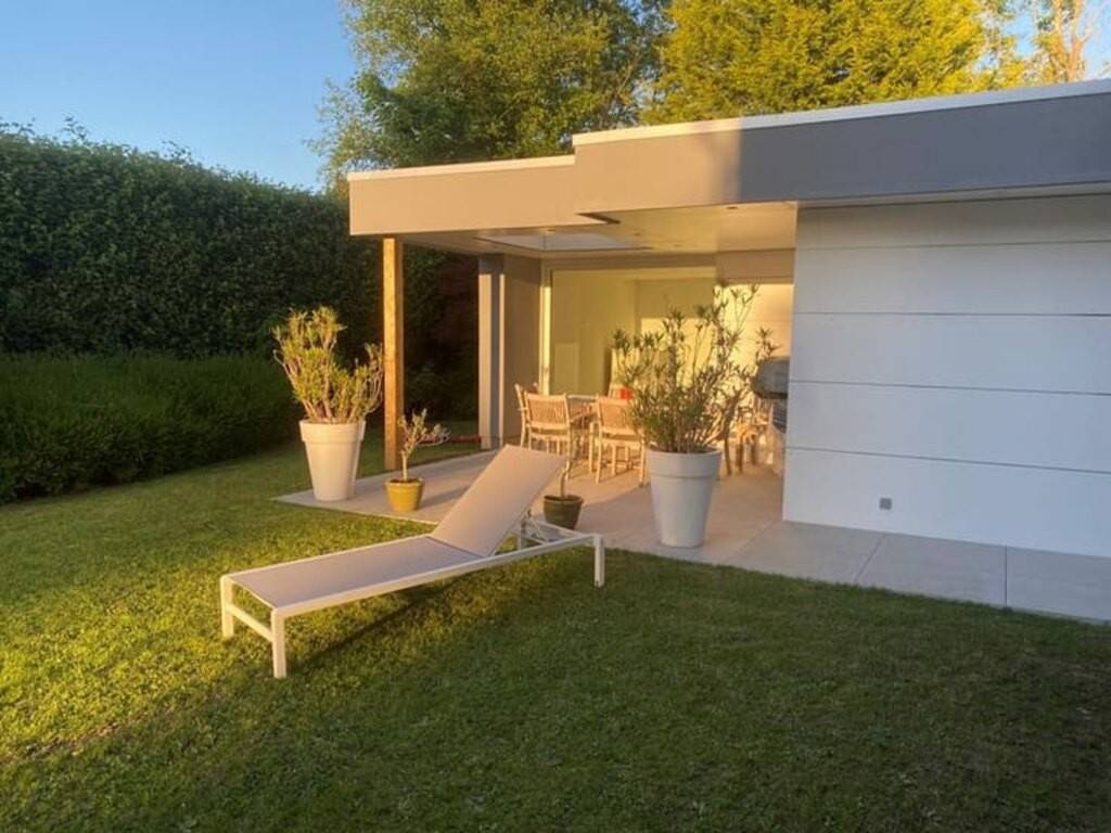 4) 1 dépendance neuve de 75 m² (2023) avec double garage et une pièce polyvalente donnant sur une terrasse couverte et le jardin.