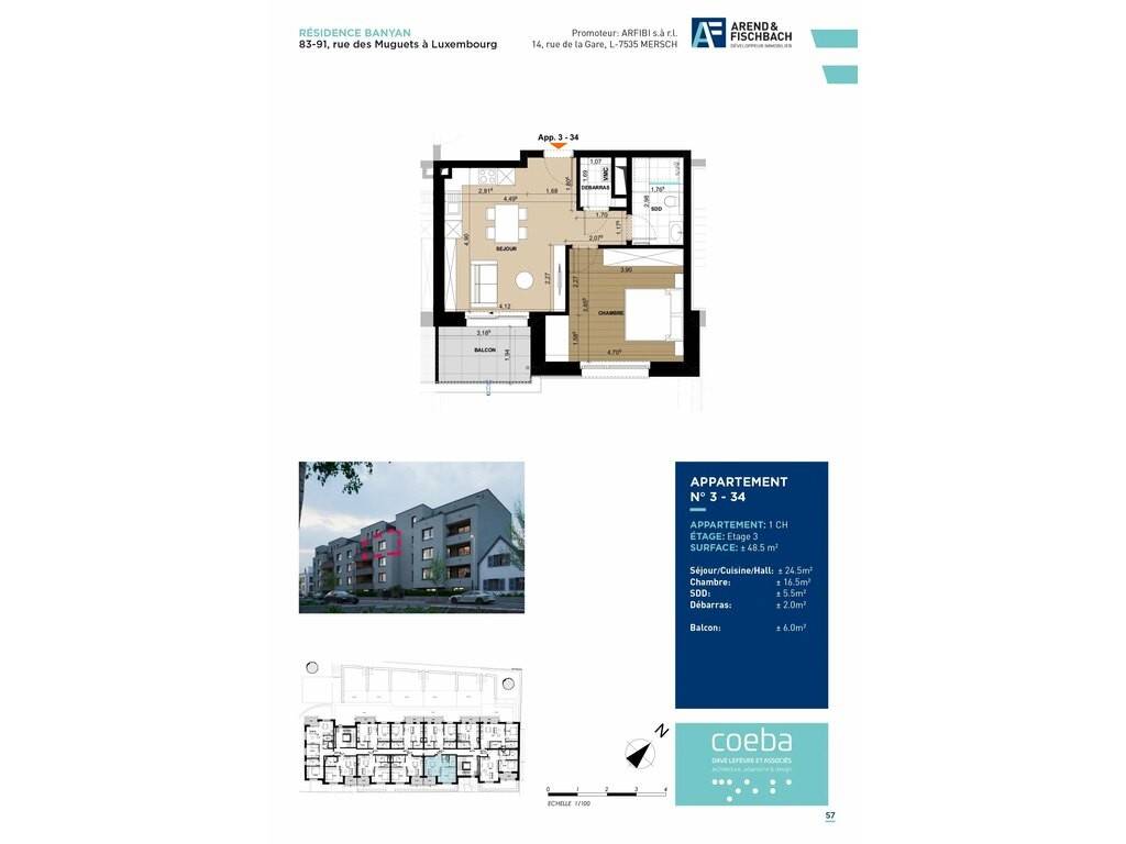 L'appartement 3-34 de 48.67m2 se compose comme suit :