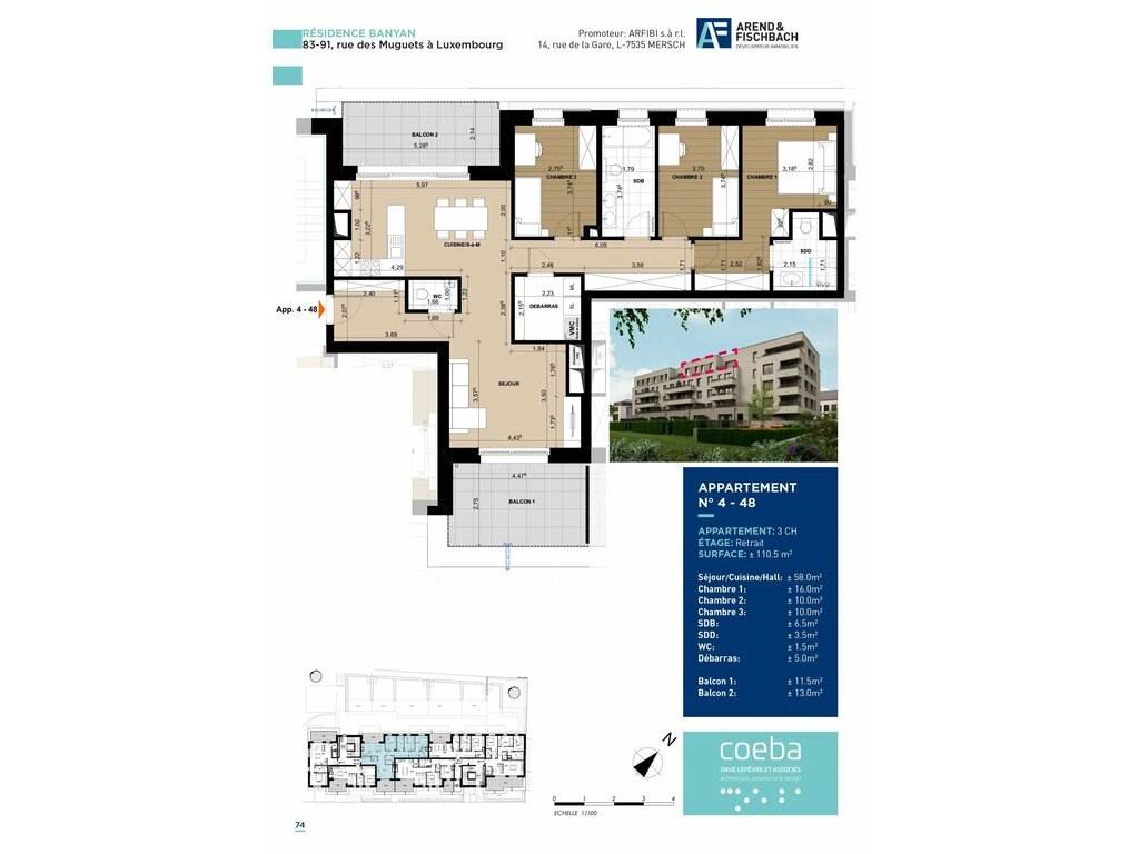 L'appartement 4-48 de 110.48m2 se compose comme suit :