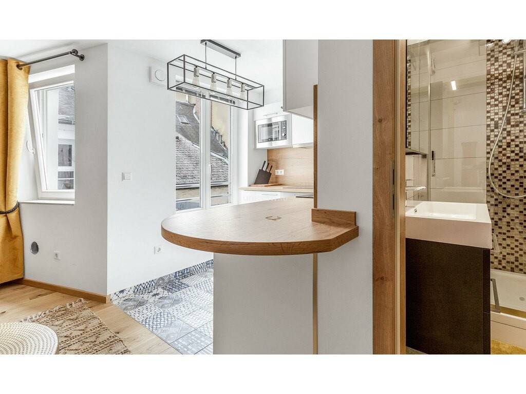 En plein centre de Luxembourg ville, à proximité des rues piétonnes, l'agence immobilière Unicorn propose à la location un magnifique studio entièrement rénové, situé au 3ème étage sans ascenseur d'une charmante résidence.