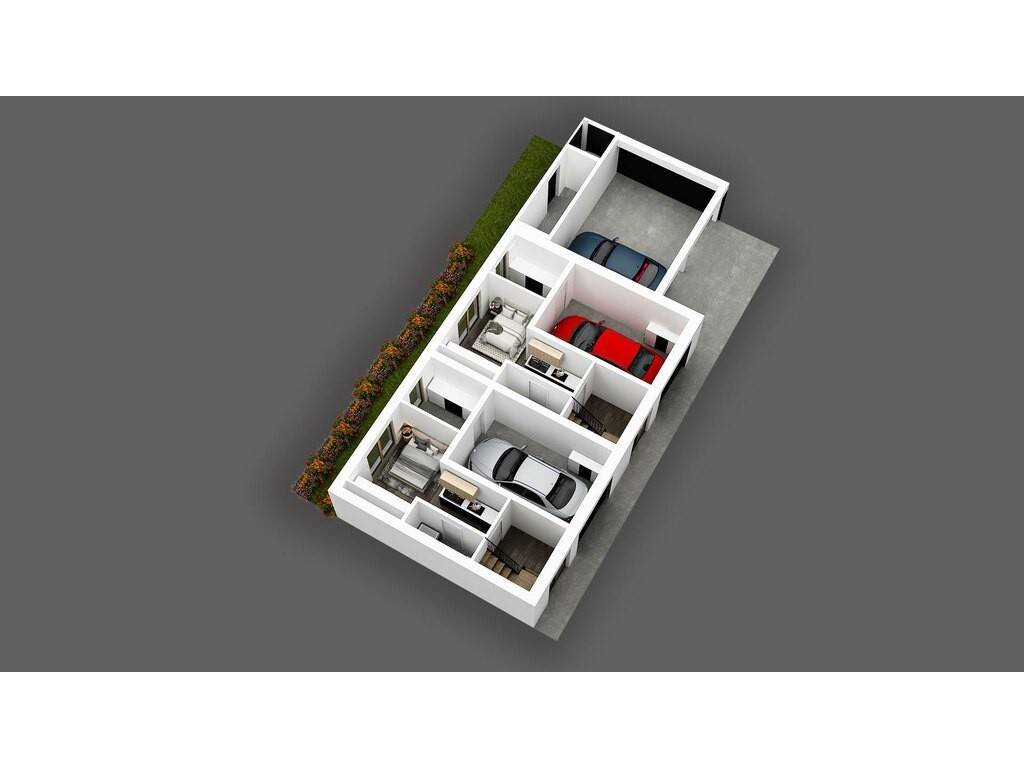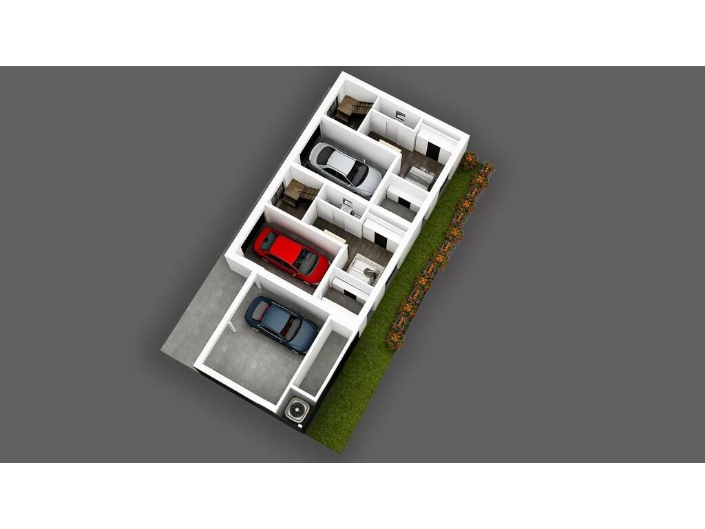 La maison HAB 01 dispose d'un jardin privé, d'un garage intérieur, ainsi que d'un emplacement de parking couvert à l'extérieur.