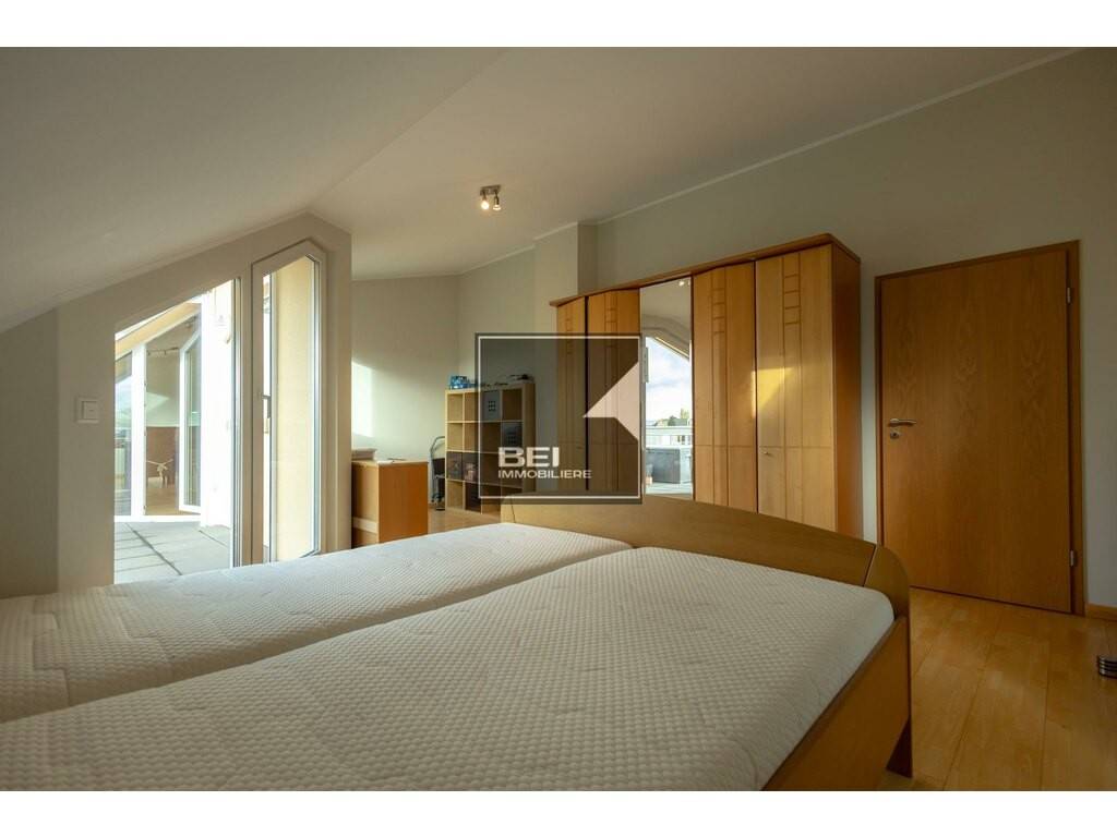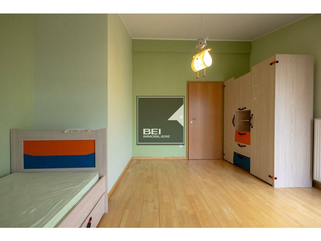BEI Immobilière, vous présente, en exclusivité, ce très bel appartement d'une superficie de +-120m2, situé dans un quartier calme et verdoyant, au 4ème et dernier étage avec ascenseur, cave et emplacement intérieur. Il se compose comme suit: hall d'entrée, 1 belle chambre à coucher avec sortie terrasse et salle de bain et douche privative, salle de douche et WC, cuisine équipée sortie sur terrasse, 1 chambre à coucher sortie balcon, et un grand living sortie sur deux balcons.