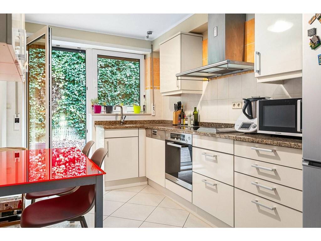 L’espace de vie se compose d’un séjour traversant lumineux de ± 25 m², comprenant un salon confortable, un coin repas convivial et une cuisine individuelle équipée Schmidt Küchen, pouvant être ouverte sur le séjour selon les besoins.