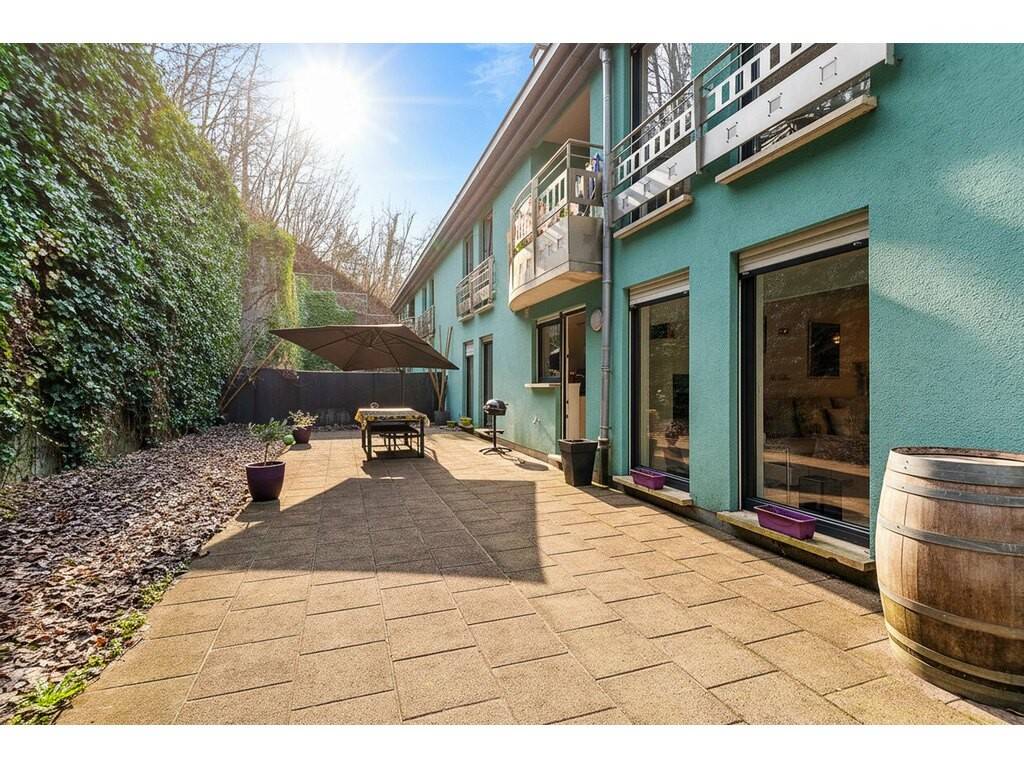 Grâce à ses larges ouvertures, la pièce de vie bénéficie d’une luminosité naturelle exceptionnelle et s’ouvre sur la terrasse orientée sud, agrémentée d’un petit jardinet, sans vis-à-vis et donnant sur la forêt. Un espace idéal pour installer une grande table et profiter pleinement des beaux jours sans quitter le confort du logement.