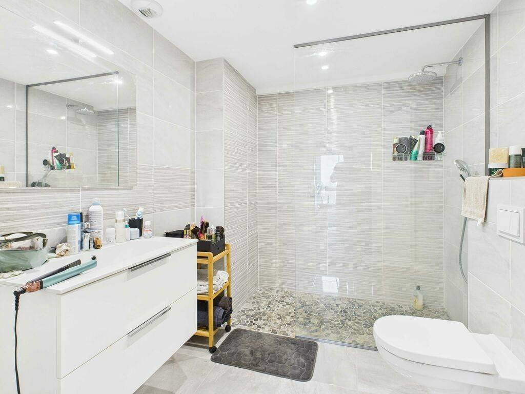 Il dispose d’une entrée, un bel espace de vie avec cuisine entièrement équipée et un accès terrasse. Une chambre, une salle de bains avec douche à l’italienne et des toilettes séparées.