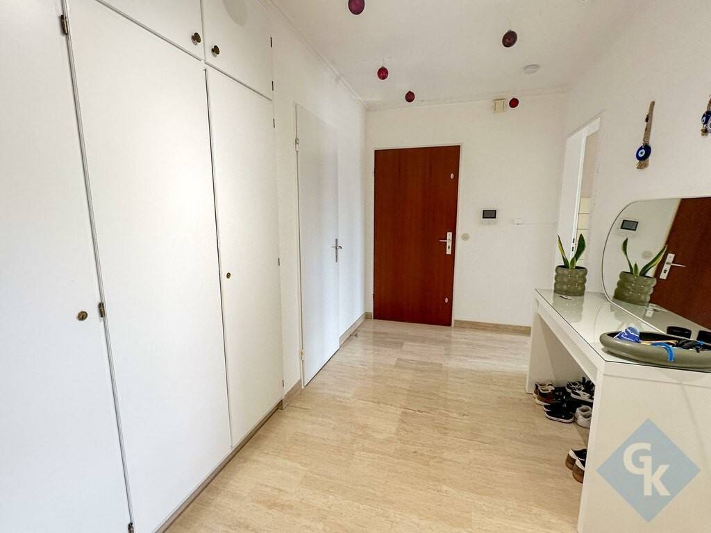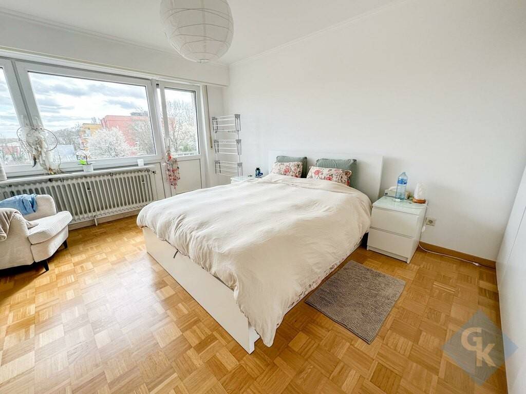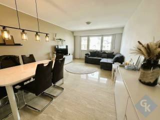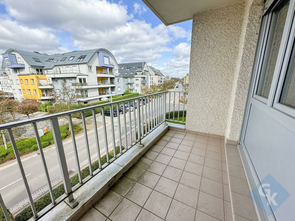 Appartement (2e étage) à 2 chambres à coucher et 2 balcons, construit en 1973 et rénovée durant les dernières années. Grand living lumineux. Cuisine équipée séparée. Volets roulants électriques. Classe énergétique : G / G. Situation très calme et agréable, à proximité immédiate de toutes les commodités diverses de la vie courante : transports en commun (train, tram et bus), écoles, médecins, commerces, restaurants et infrastructures de loisirs. Accès rapide vers Luxembourg-ville et la Cloche d'Or voire les principaux axes autoroutiers.. Composition du bien d`une surface habitable de 96 m² (terrasses de 10.16 m² pris comme 1/2 dans le calcul de la surface habitable totale). 2e étage: hall (10.3 m²) - living/ salle à manger (26.33 m²) - cuisine équipée (12.33 m²); 2 chambres (13.08 m², 18.42 m²); salle de bains/buanderie (5.2 m²) + WC séparé (1.52 m²) - terrasses de 10.16 m². 1 garage / box fermé (profondeur de 5 m).