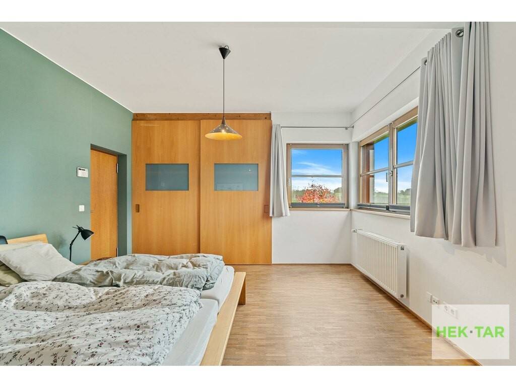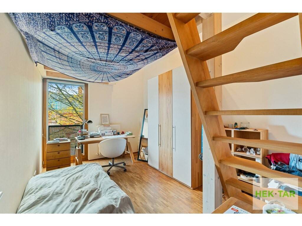 À l'étage, une mezzanine ouverte sur le salon, idéale comme espace bureau, apporte un charme supplémentaire à l'ensemble. L'étage dispose également d'une suite parentale avec salle de douche, de deux chambres à coucher supplémentaires ainsi que d'une seconde salle de douche.