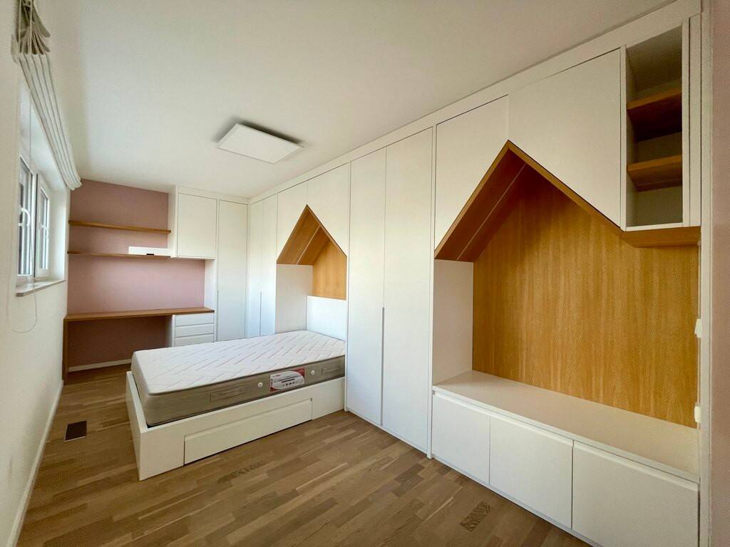 - Trois chambres à coucher avec lit, bureau et armoires intégrés, dont une suite parentale avec :