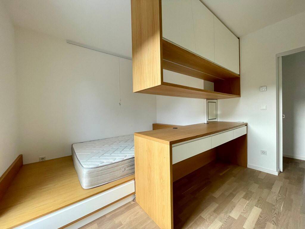 - Une chambre à coucher avec lit, bureau et armoires encastrés