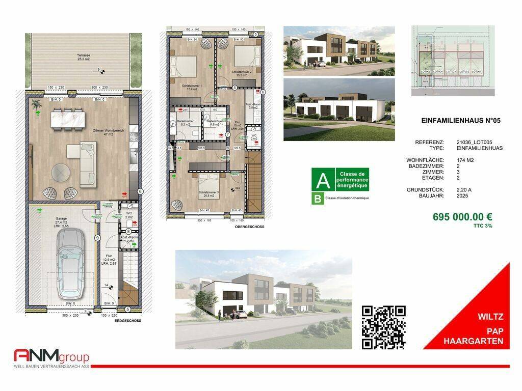 L'agence Bureau Immobilier Wagner a le plaisir de vous présenter votre future maison (lot.5), erigée sur un terrain de 2,20 ares. (aussi d'autres lots disponible, (lot.1 VENDU)
