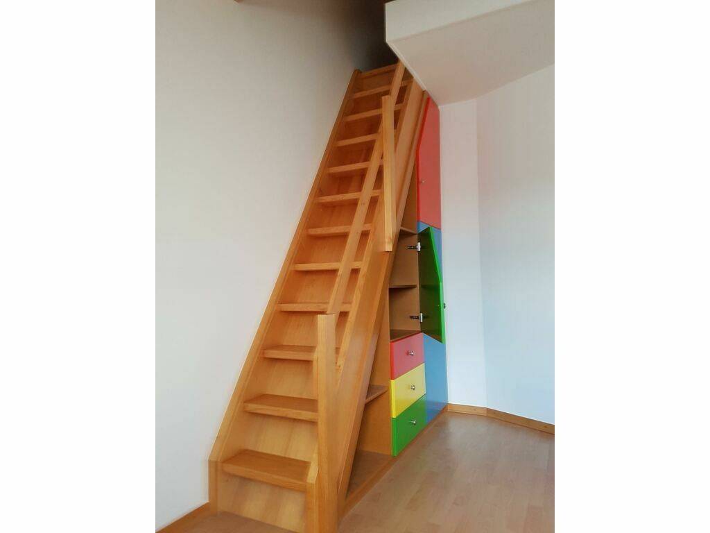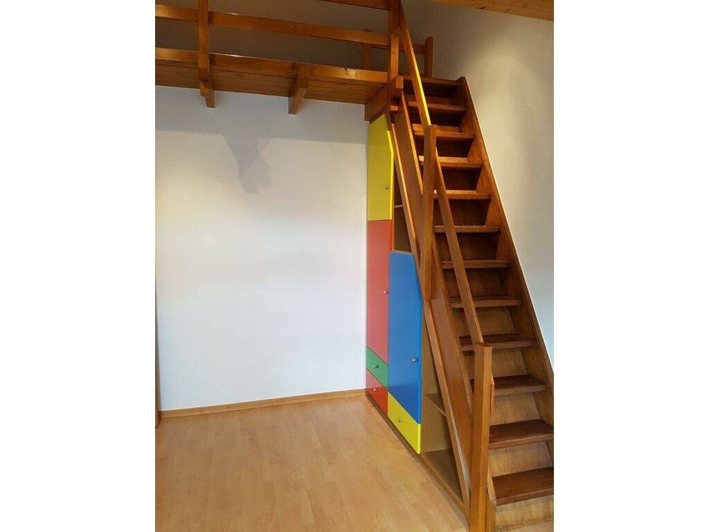 L’appartement se compose d’un hall d’entrée avec placard, d’un spacieux et lumineux salon/séjour ouvert sur une cuisine entièrement équipée, ainsi que de deux chambres à coucher, chacune disposant d’une mezzanine et d’un espace de rangement. Une grande salle de bain avec douche et WC complète ce bien.