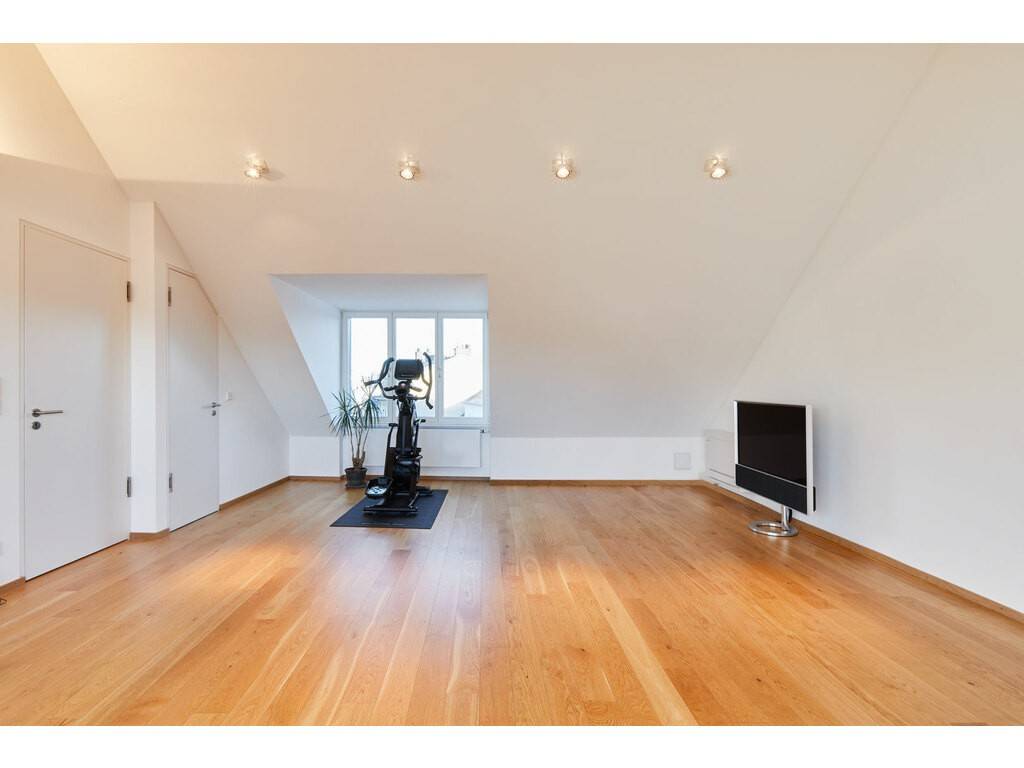 Espace de loisirs, salle de sport ou chambre d'amis : le dernier étage se compose d'une vaste et lumineuse pièce avec salle de douche attenante.