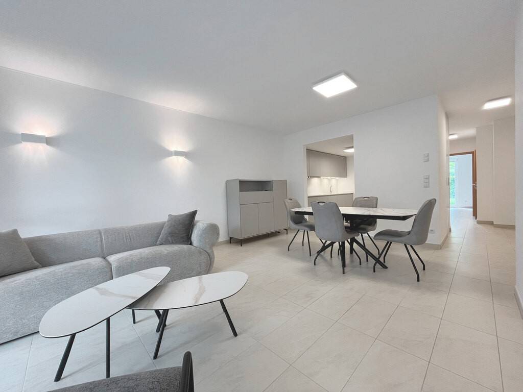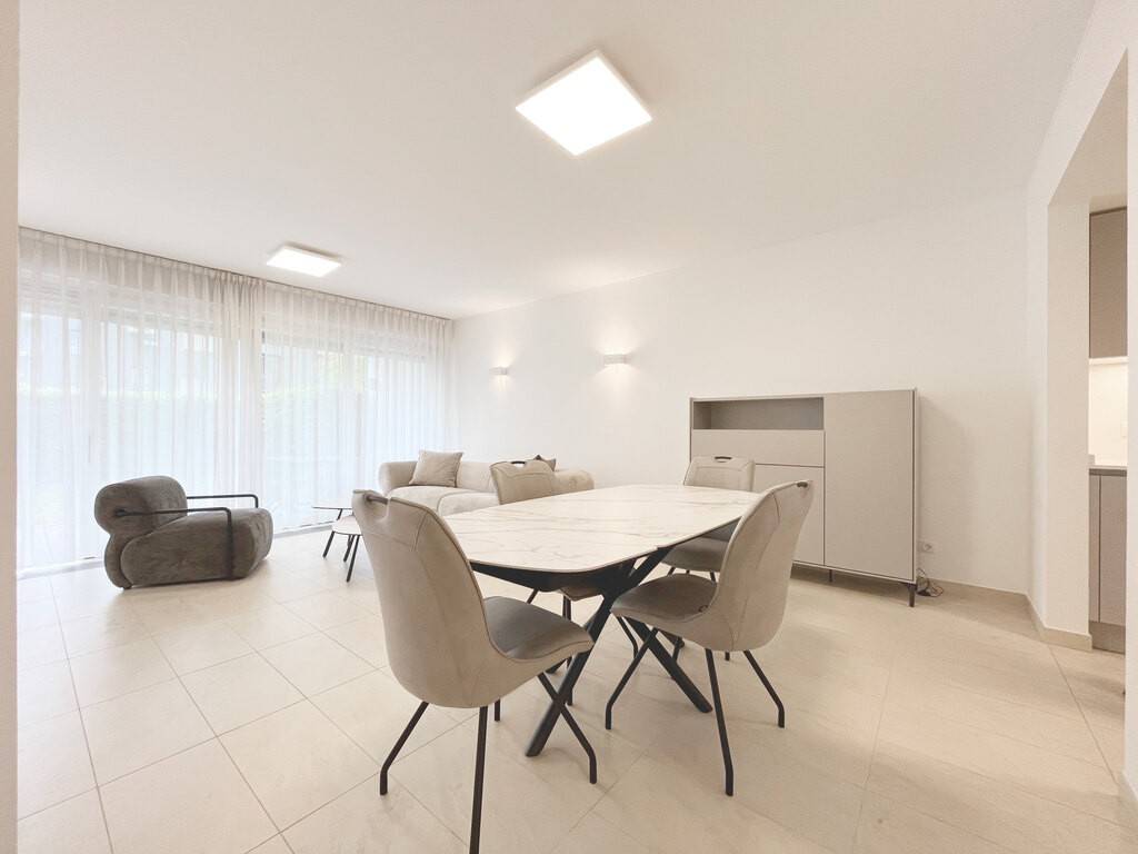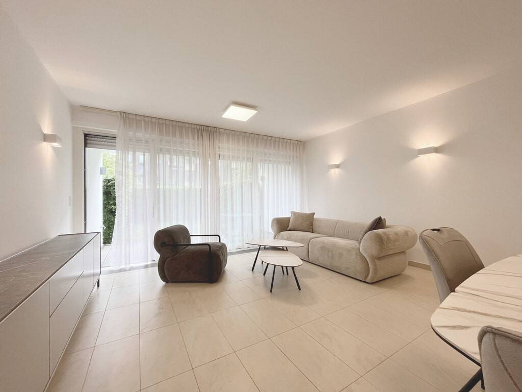 Superbe appartement de 67m2 complètement meublé, situé au rez-de-jardin d'une résidence nichée au cœur du quartier de Kirchberg. Cet appartement comprend un espace d'entrée, un grand living offrant accès à une terrasse et un premier jardin orienté sud, une cuisine équipée entièrement neuve, une chambre à coucher avec une grande garde-robe, une salle de douche et un WC séparé. Une cave, un emplacement dans la buanderie commune et une place de parking intérieure avec borne de recharge pour voiture électrique complètent cette offre.