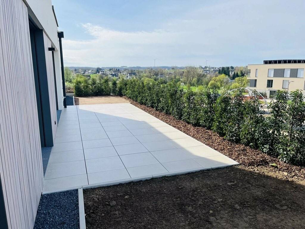 Situé à Steinfort, cet appartement neuf (2024) de +/- 100 m² se trouve en rez-de-jardin et se compose comme suit : Un hall d'entrée de +/- 7 m² avec placards donnant accès à un couloir de +/- 6 m² desservant deux chambres de +/- 12 m² avec placards, un WC séparé, un débarras de +/- 3 m², une salle de douche (double vasque, WC, douche, VMC) de +/- 6 m², ainsi qu'une grande pièce à vivre de +/- 53 m² avec cuisine équipée et coin bureau.