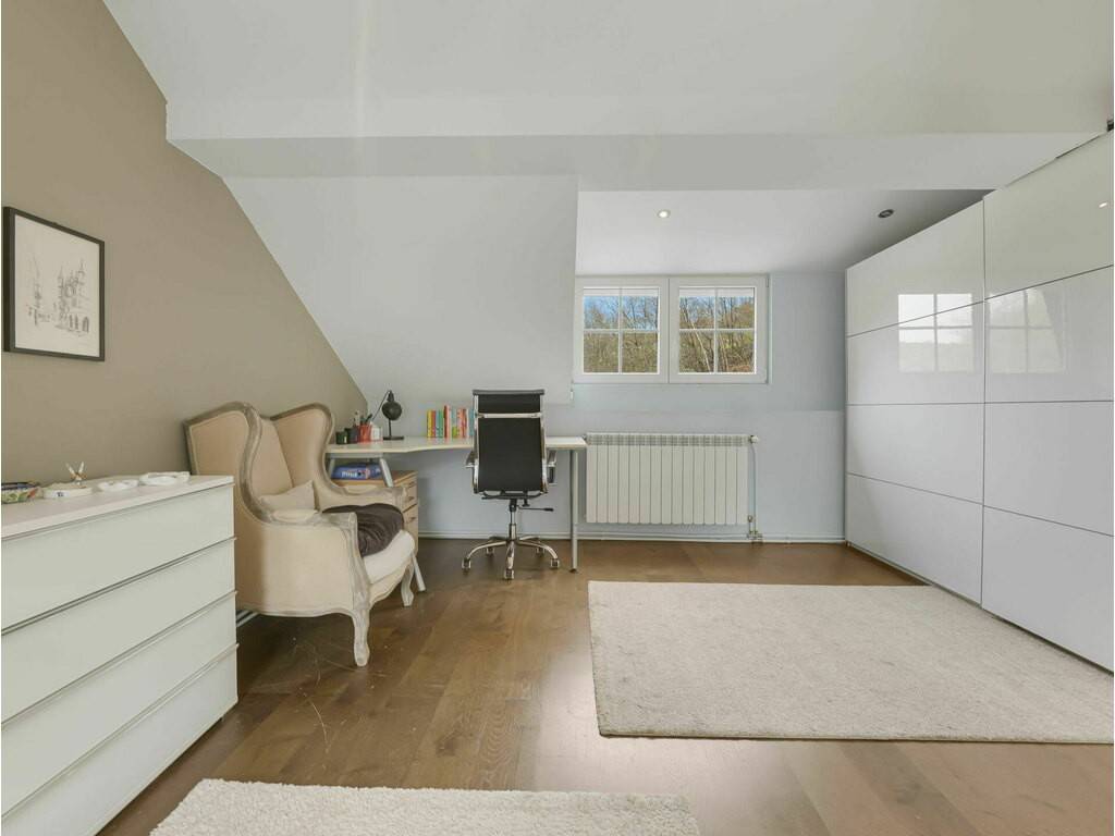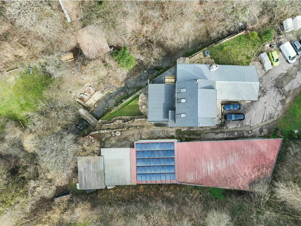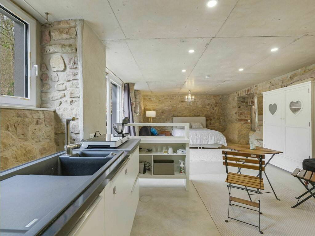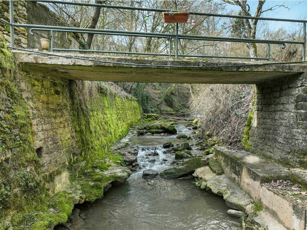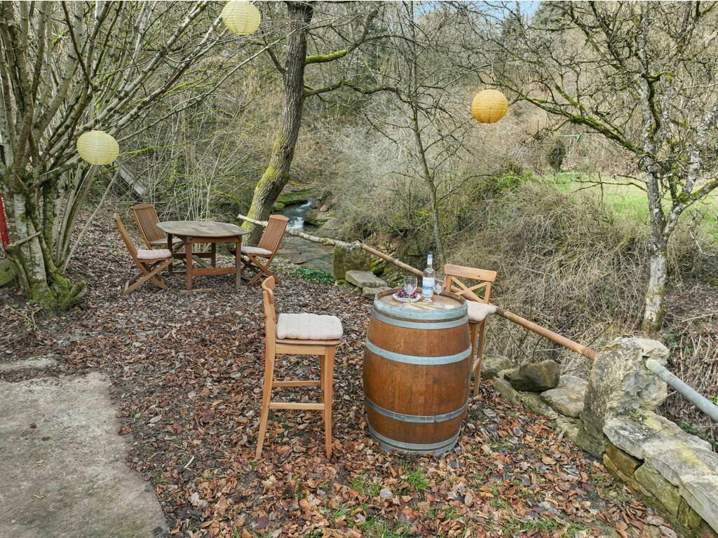 À l'arrière de la propriété, un ruisseau naturel (±2 m de large) traverse le terrain. Un pont privé mène à l'autre rive où se trouve un chalet de loisirs entièrement équipé, comprenant : - Eau courante, électricité et chauffage - Espace extérieur avec foyer / feu de camp, un cadre idéal pour recevoir, organiser des retraites privées ou accueillir des invités dans un environnement naturel unique