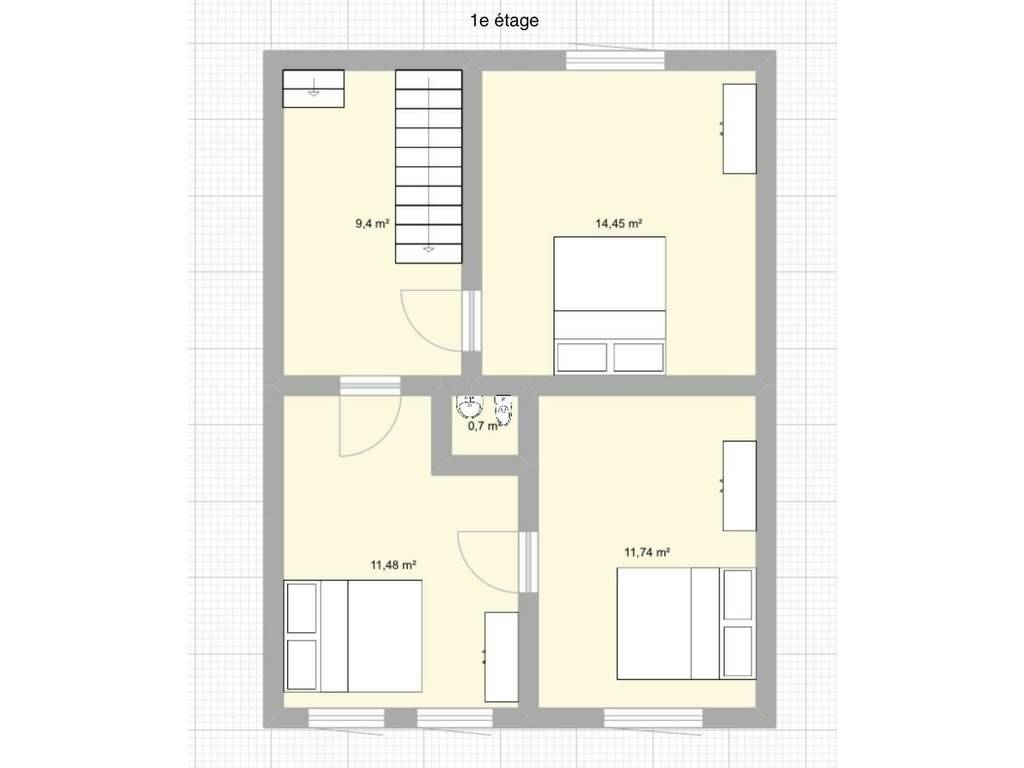 À l'étage, le premier niveau offre trois chambres. Les installations existantes d'une salle de bain permettent également la création facile d'une seconde salle de bain, idéale pour une suite familiale.