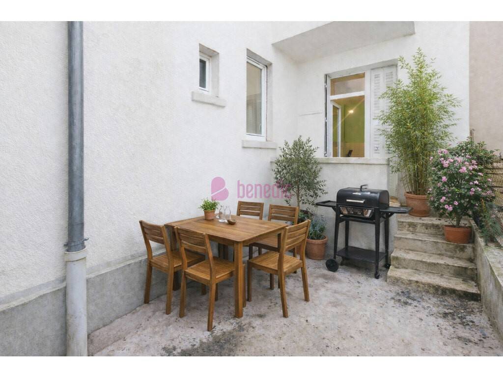 En rez-de-chaussée surélevé, vous pourrez qu'être séduit par ce charmant appartement ! Idéalement agencé, il offre une pièce de vie lumineuse, une chambre avec salle de bain privative, un toilette et une cuisine spacieuse prolongée par une cour de 10m2 où il fera bon vous prélasser.