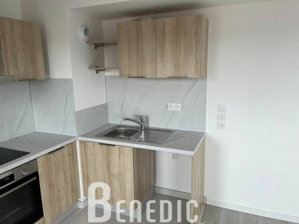 Cet appartement T2 de 40 m² est composé d'une cuisine équipée (plaque de cuisson, hotte et éléments de rangement) ouverte sur le séjour, une chambre et une salle d'eau avec WC.