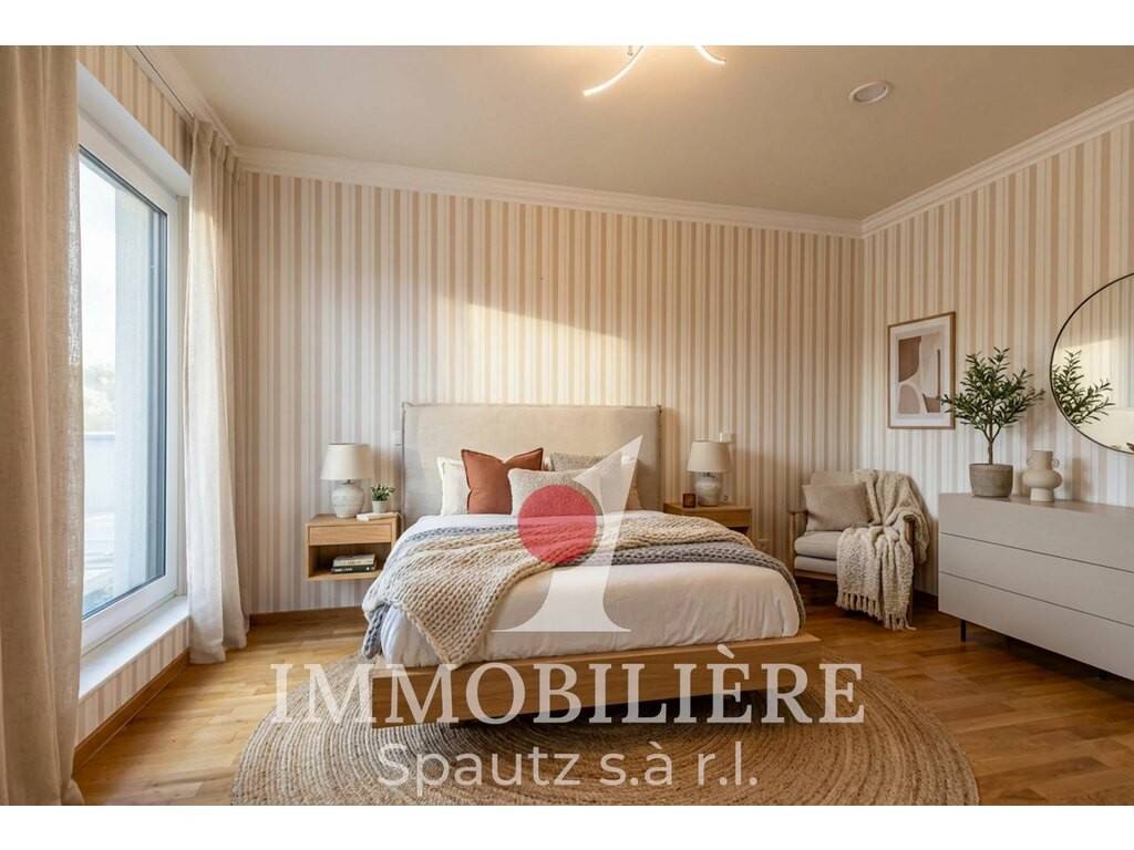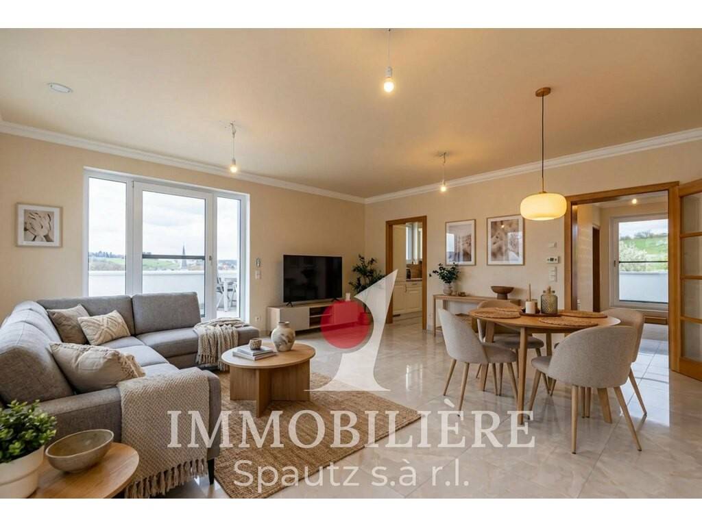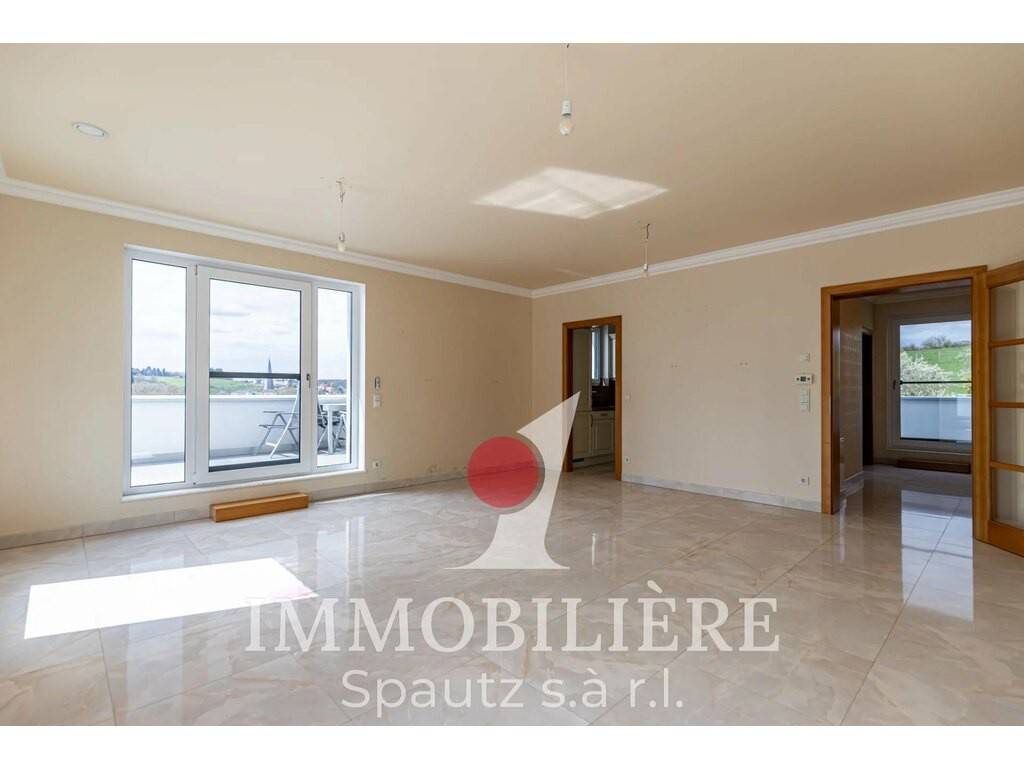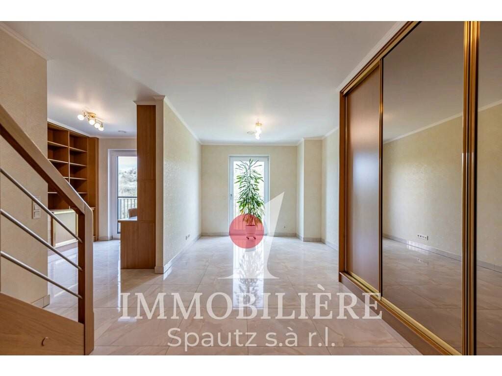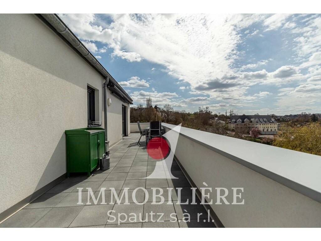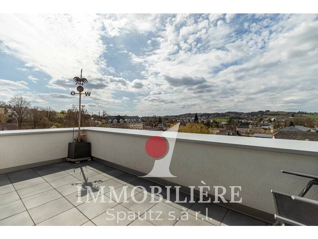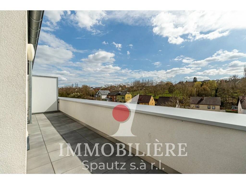 Ce duplex moderne construit en 2014 est situé aux 2e et 3e étages d’une résidence bien entretenue avec ascenseur. Il séduit par sa disposition fonctionnelle et sa superbe terrasse penthouse d’environ 55 m² orientée sud-ouest, offrant une belle vue dégagée sur Junglinster.