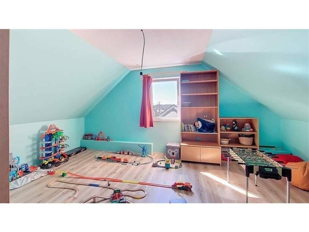 Au 1er étage, la maison offre trois belles chambres, un bureau ainsi qu’une salle de bain complète avec baignoire et douche. Le deuxième étage accueille encore deux chambres supplémentaires, parfaites pour une grande famille, des espaces polyvalents ou des pièces de loisirs.