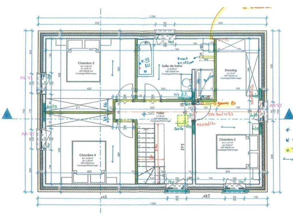 Étage Hall de nuit 3 belles chambres Salle de bains complète : douche, baignoire, meuble vasque, WC
