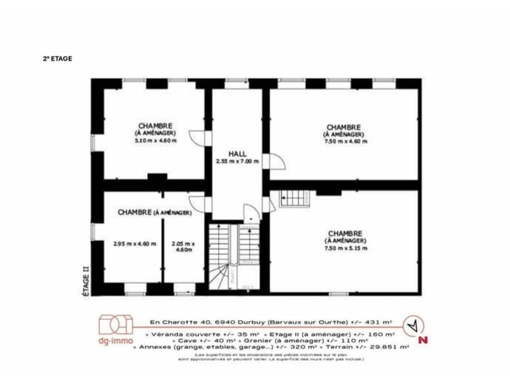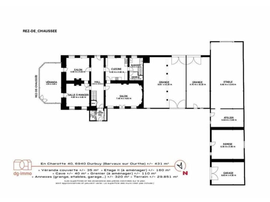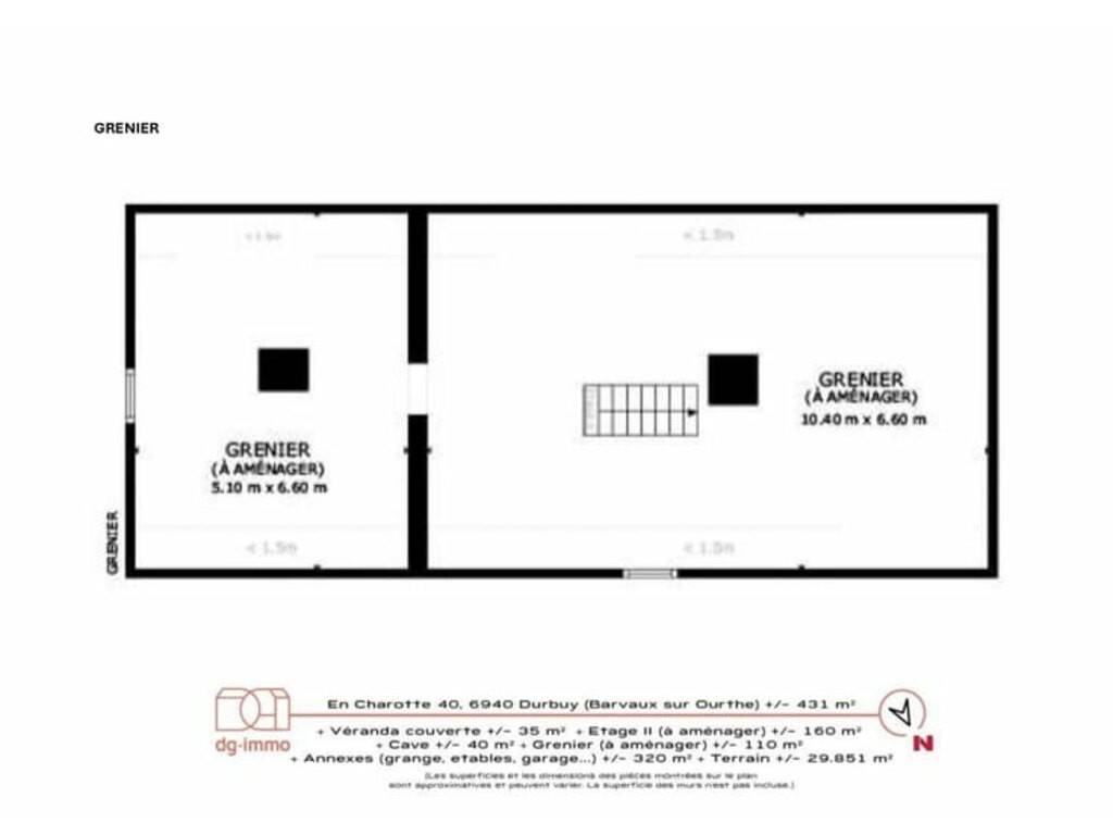 Ancienne ferme des XVIIIe et XIXe siècles, la propriété offre jusqu’à ± 950 m² de surface bâtie aménagée ou à aménager, représentant un potentiel de développement exceptionnel.