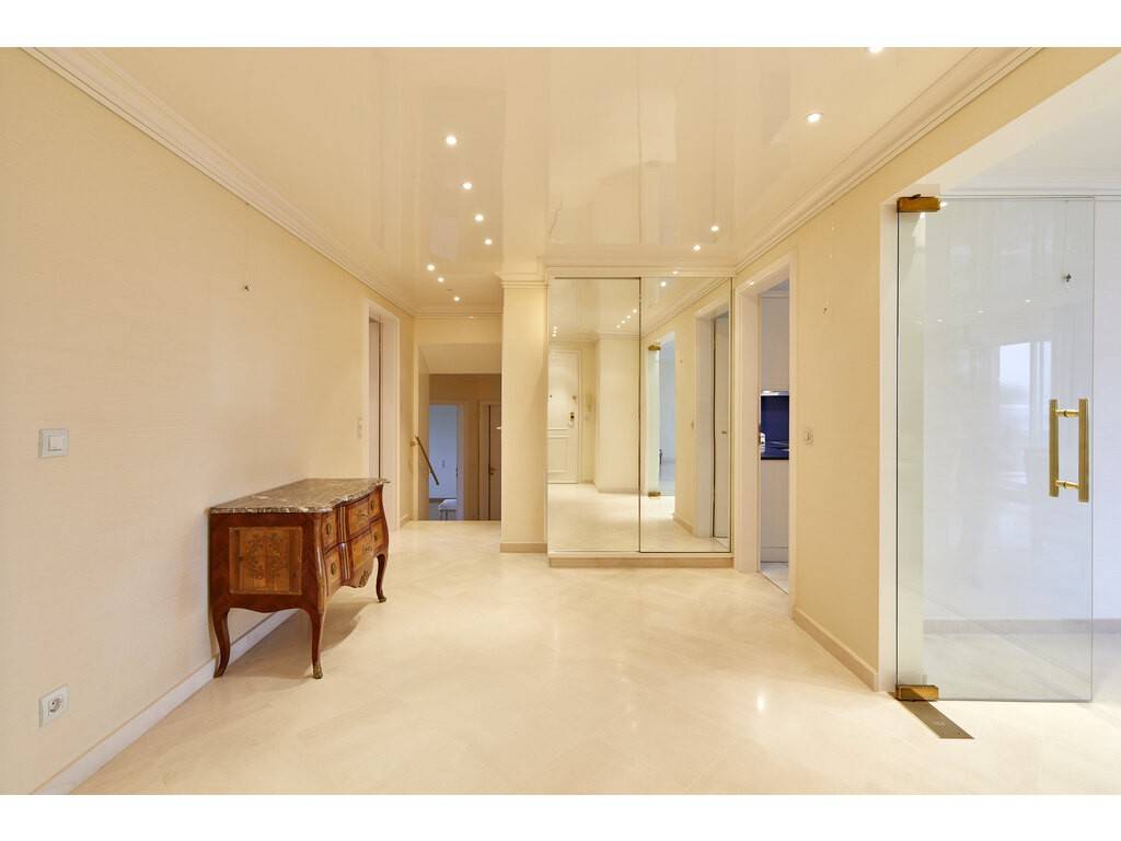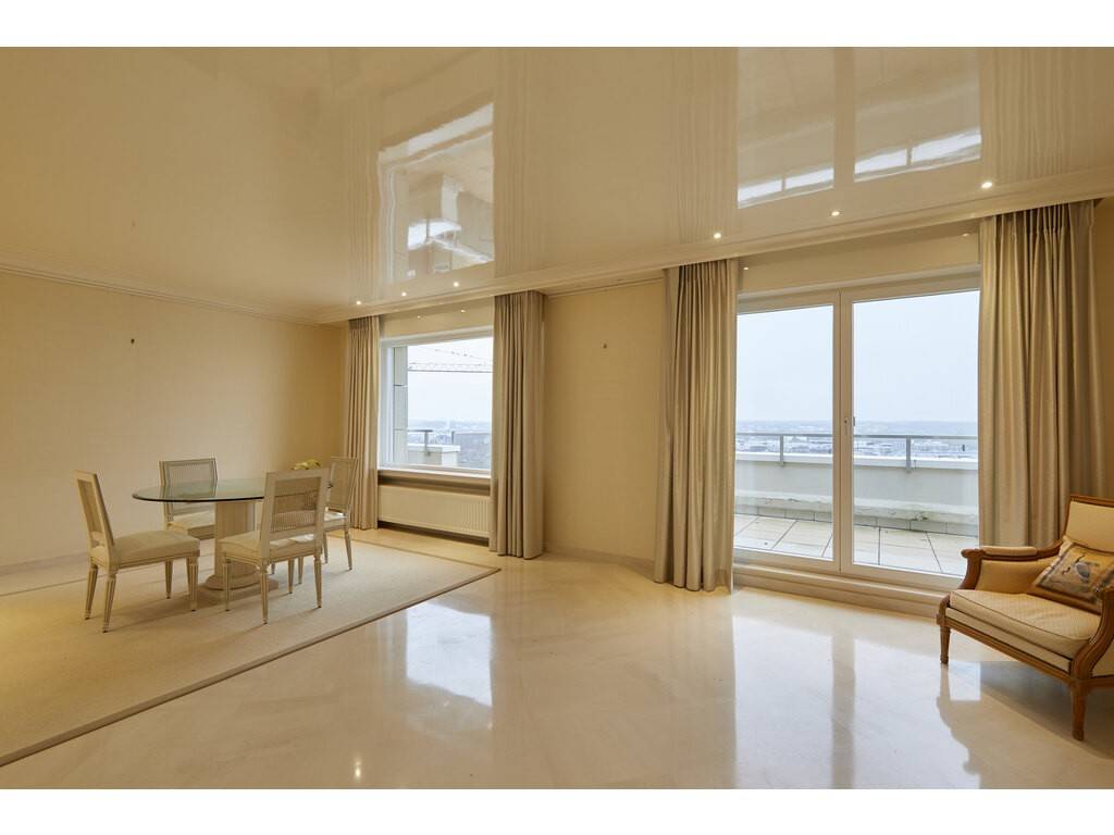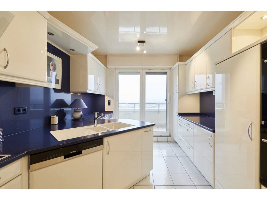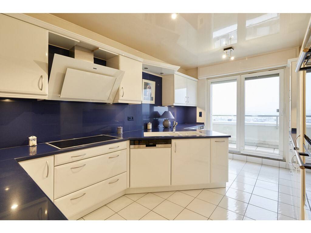 Le bien se situe au 3ème étage et s'ouvre sur un vaste hall d'entrée avec placards encastrés et toilettes séparées. Celui-ci dessert un très grand salon - salle à manger et une spacieuse cuisine équipée séparée donnant tous deux accès à une première terrasse longeant ces deux pièces.