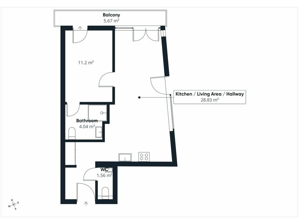 Distribution : hall d'entrée avec placard - cuisine équipée ouverte sur le living/salle à manger – 1 belle chambre à coucher - salle de douche - WC non-séparé - 1 WC séparé Inclus : balcon (+/- 5 m²) - 1 emplacement intérieur en sous-sol - grande cave privative.