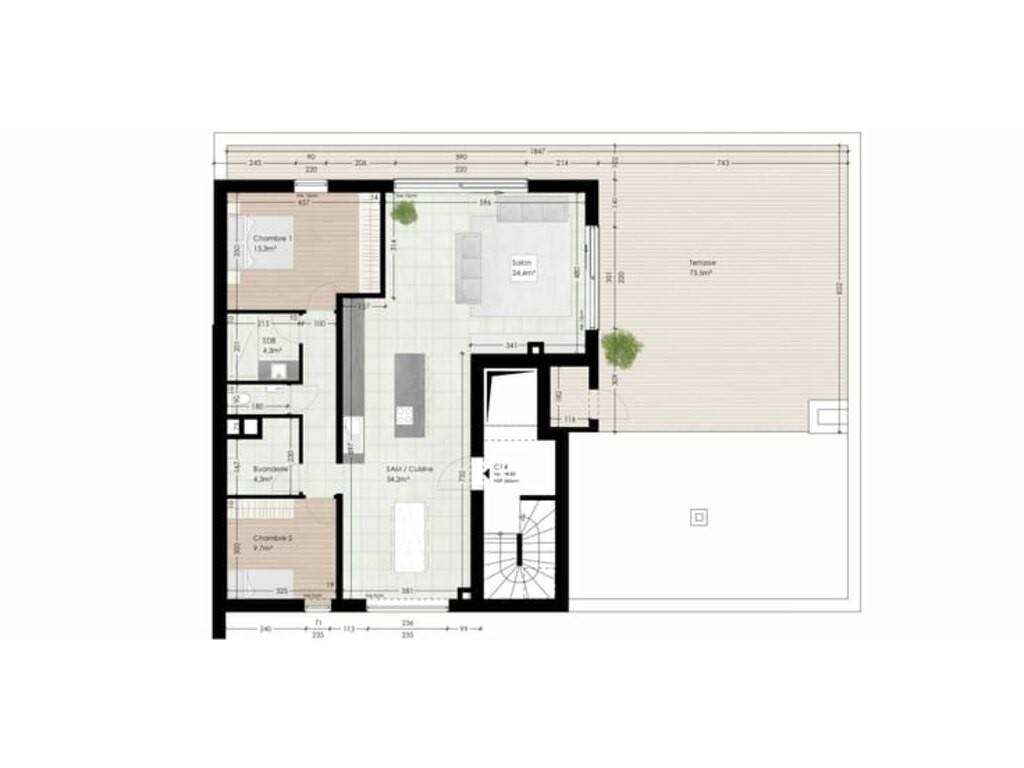 Idéalement situé à proximité immédiate de toutes les commodités (écoles, commerces, transports en commun, administration, pharmacie, salle de sport…), ce penthouse neuf basse énergie vous séduira par son confort moderne et son environnement calme et verdoyant.