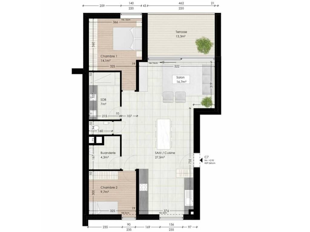 Idéalement situé à proximité immédiate de toutes les commodités (écoles, commerces, transports en commun, administration, pharmacie, salle de sport…), cet appartement neuf basse énergie vous séduira par son confort moderne et son environnement calme et verdoyant.