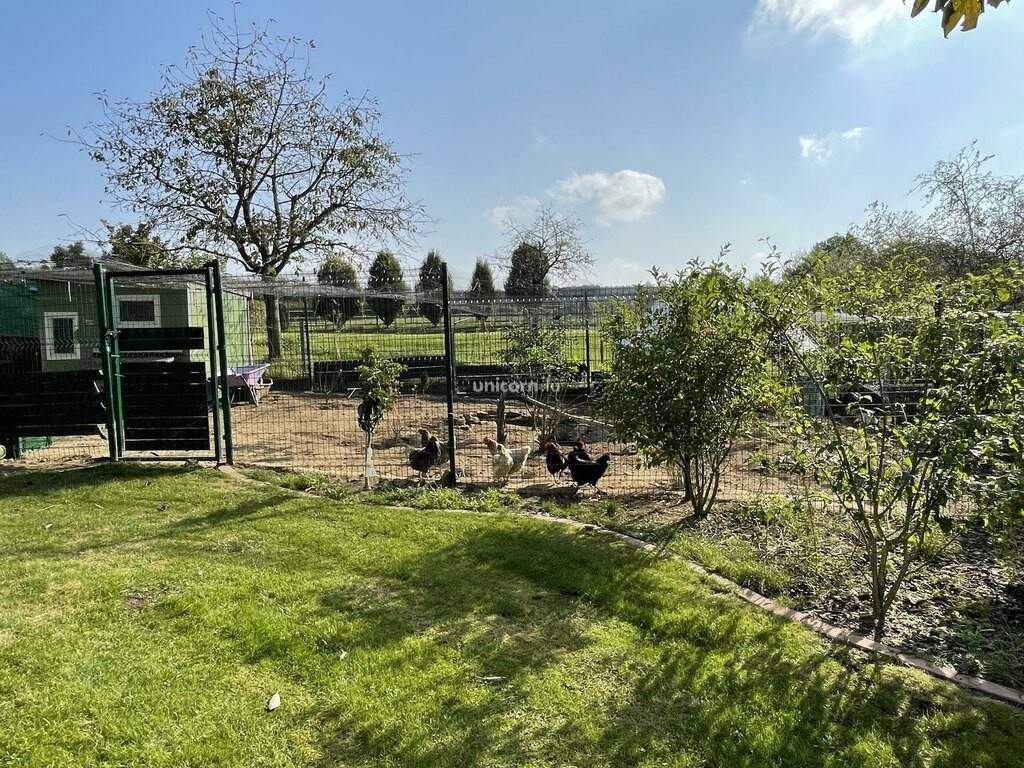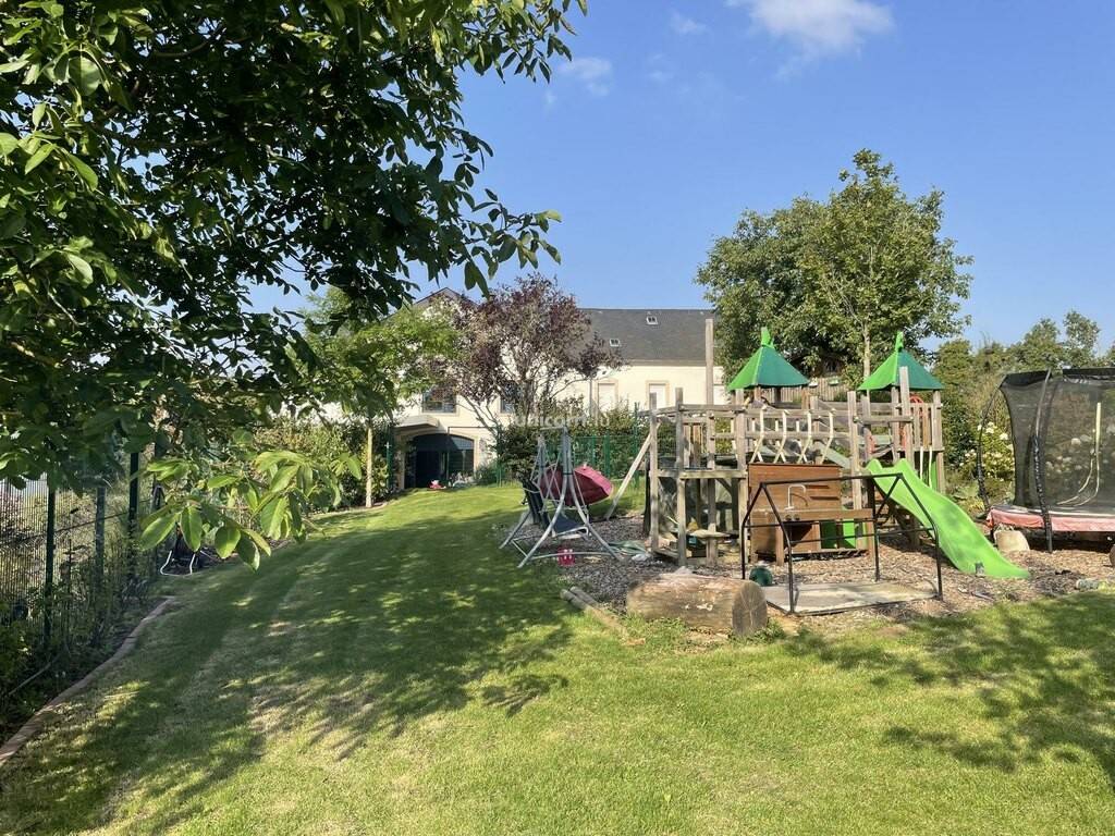 Les extérieurs sont un autre atout majeur de cette propriété. L'immense jardin, paysagé avec soin, offre différents espaces de loisirs : aire de jeux pour enfants, zone de détente avec transats et jacuzzi, ainsi que des enclos pour animaux. Une terrasse principale, en partie couverte, prolonge les espaces de vie extérieurs, avec une orientation qui garantit un ensoleillement optimal tout au long de la journée.