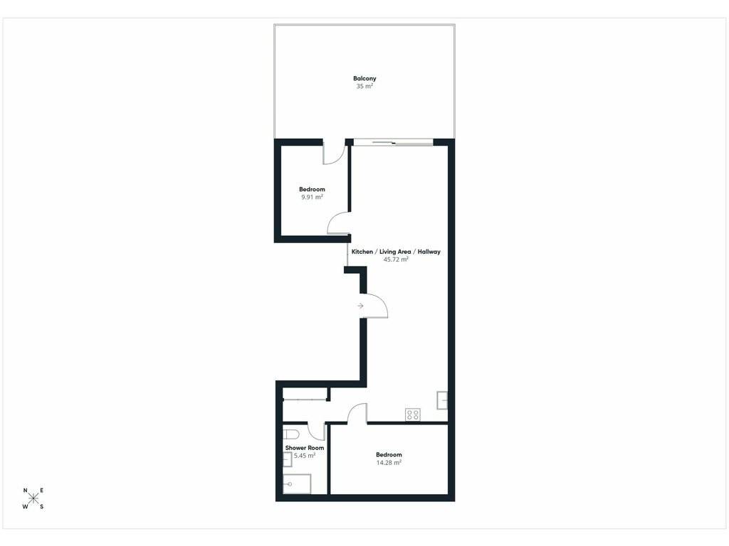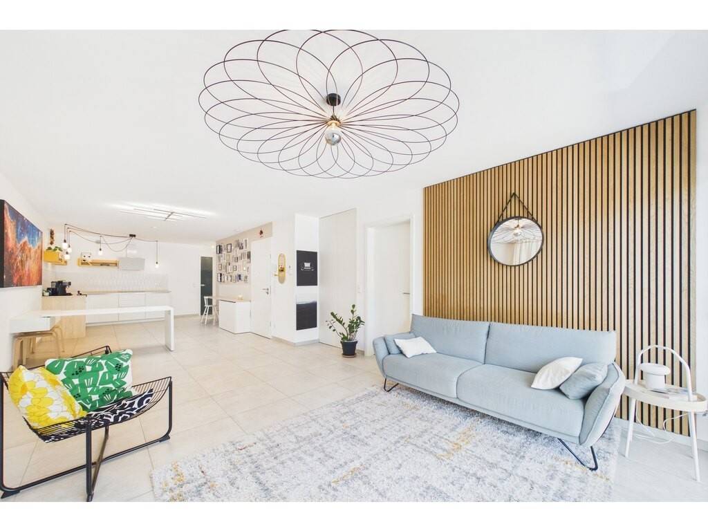 Appartement moderne de 77,71 m² de surface utile, avec terrasse privative de 35 m², sis au premier étage d'une résidence livrée en 2022. Le bien, au style minimaliste présente de beaux espaces ouverts, une chambre à coucher de 10 m² avec accès direct sur la grande terrasse, et une deuxième pièce spacieuse de 14,3 m² sans fenêtre (actuellement configurée en chambre d'enfants), idéale pour un espace nuit, un bureau ou un home-cinéma.