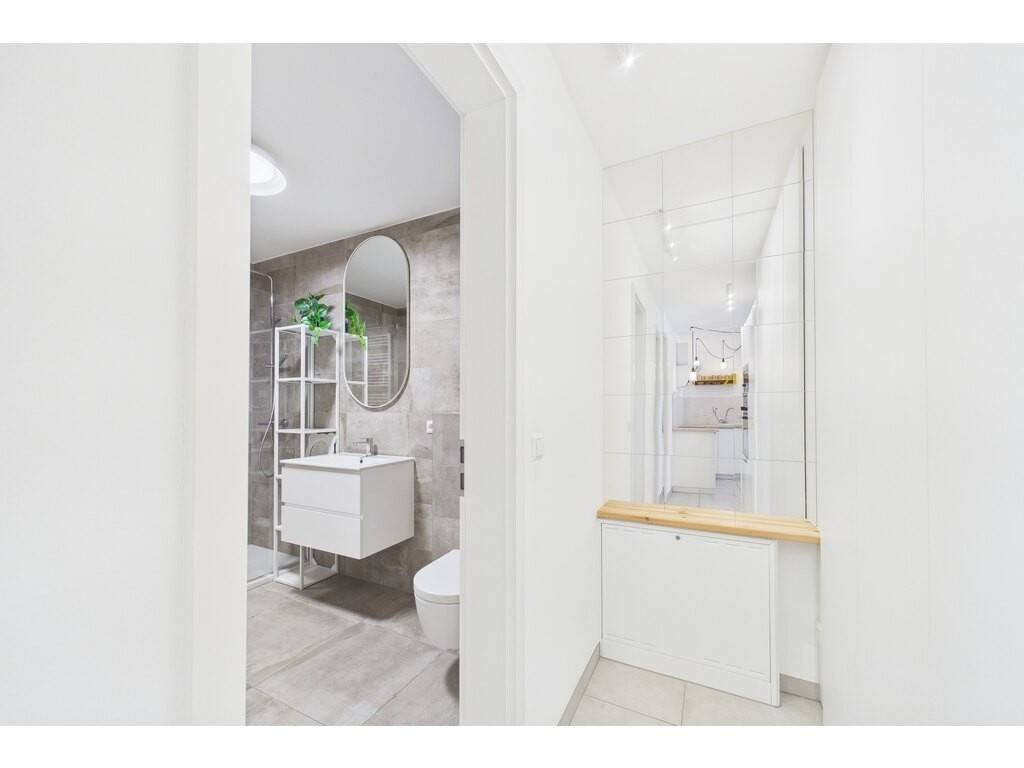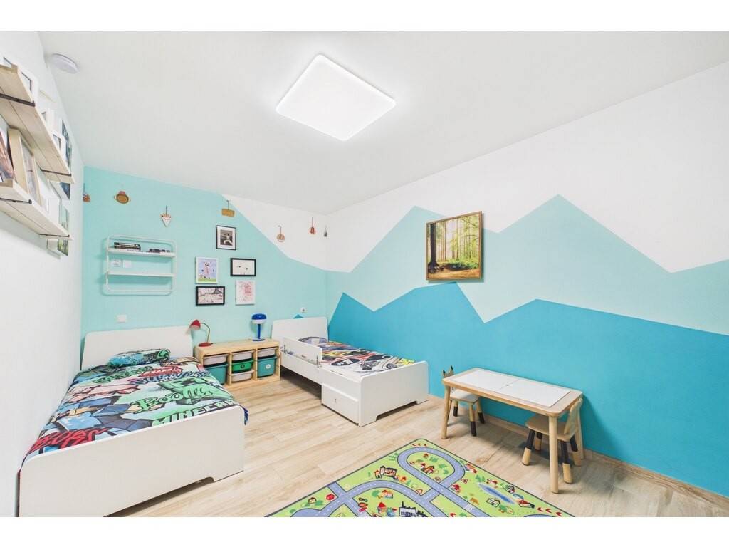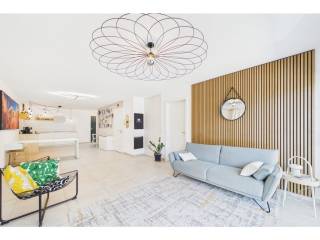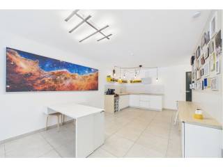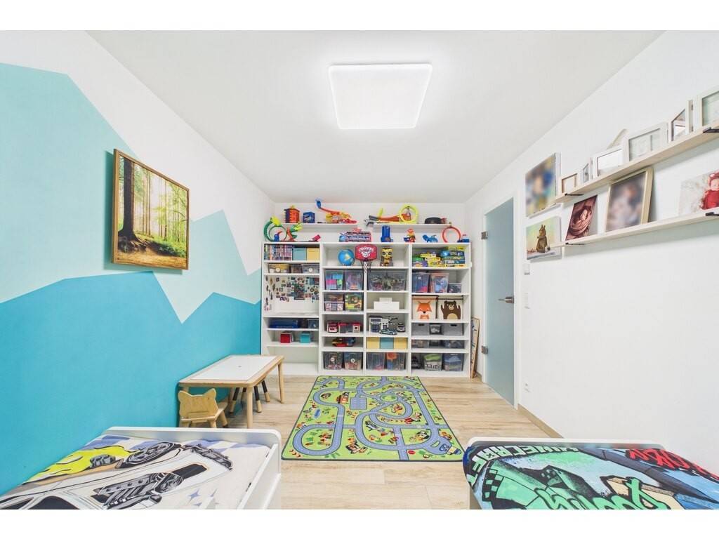 A modern flat with a cadastral floor area of 77.71 sqm, featuring a 35 sqm private terrace, situated on the first floor of a residential building completed in 2022. The property, with its minimalist style, features beautiful open-plan spaces, a 10 sqm bedroom with direct access to the large terrace, and a second spacious 14.3 sqm room without windows (currently used as a children's bedroom), ideal for a sleeping area, a home office or a home cinema.