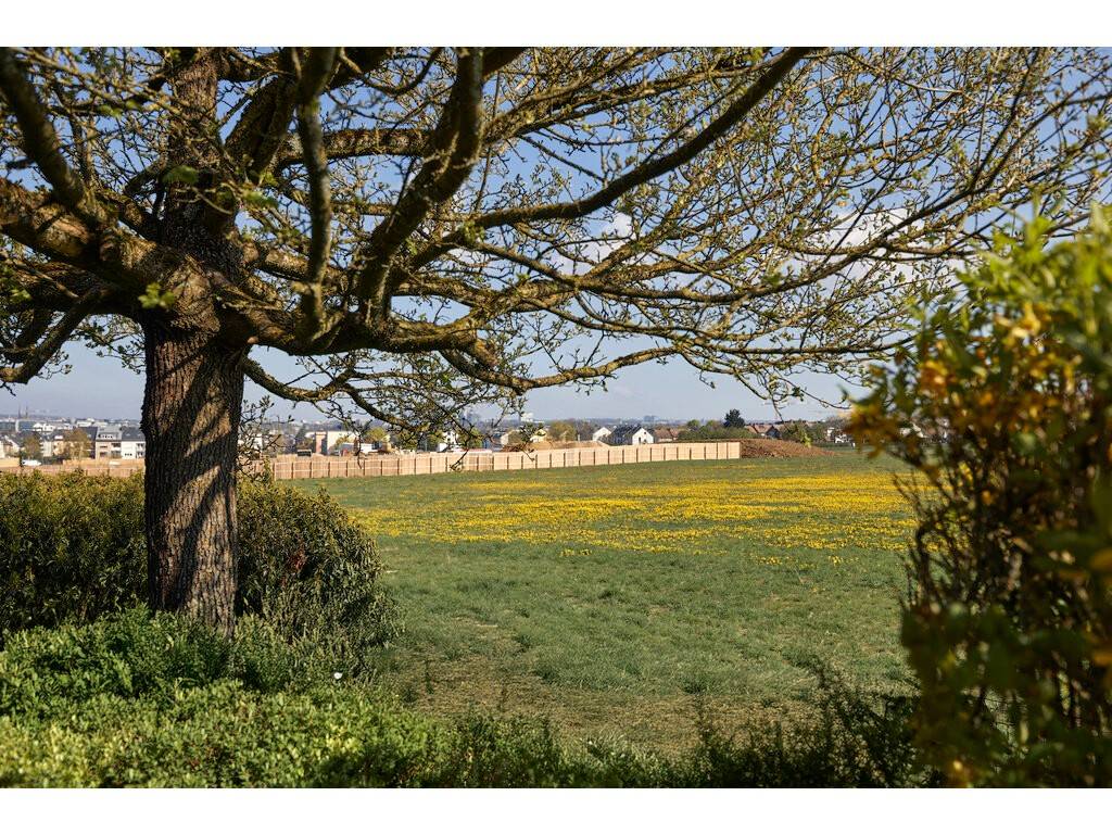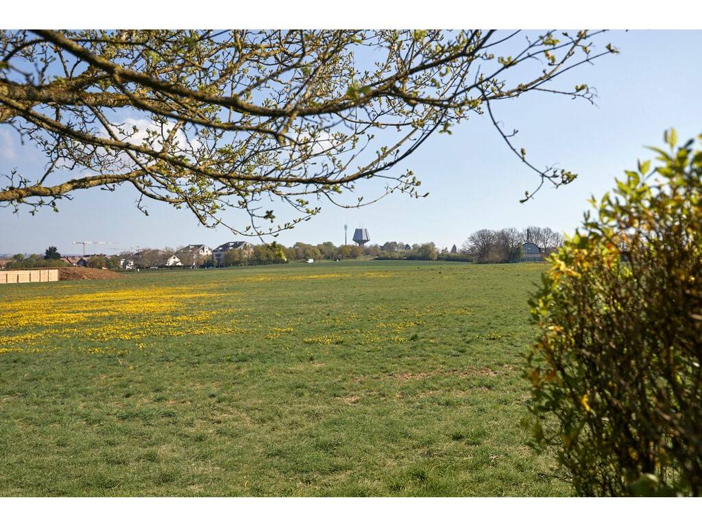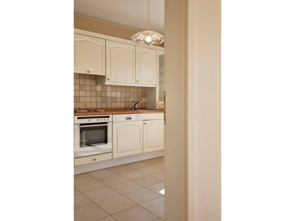 Le hall d'entrée avec placards encastrés, toilettes séparées et débarras mène à un spacieux et lumineux séjour et à une cuisine équipée séparée. Cet espace de vie donne accès à une agréable terrasse de 8 m² offrant une belle vue dégagée.