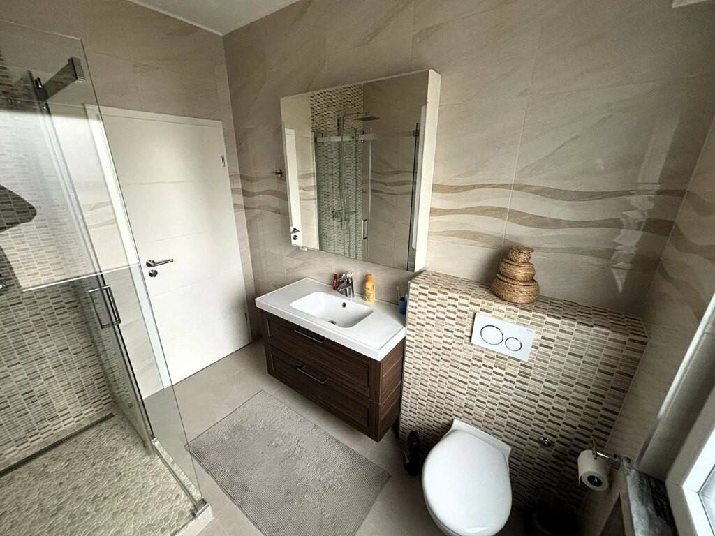 -2 emplacements de parking extérieurs -Jardin privatif de +/- 70 m² exposé Ouest avec accès au grand parc --communal (balançoires, city stade, écoles, ....) -Garage fermé pour une voiture + rangement. -2 Caves privatives pour chaque appartement. -Buanderie commune