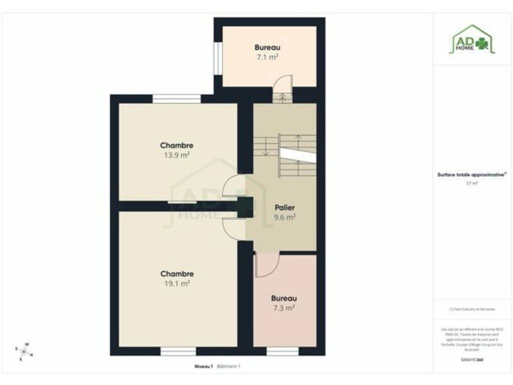 L’entresol accueille un palier desservant un bureau, parfait pour le télétravail ou un espace polyvalent.
