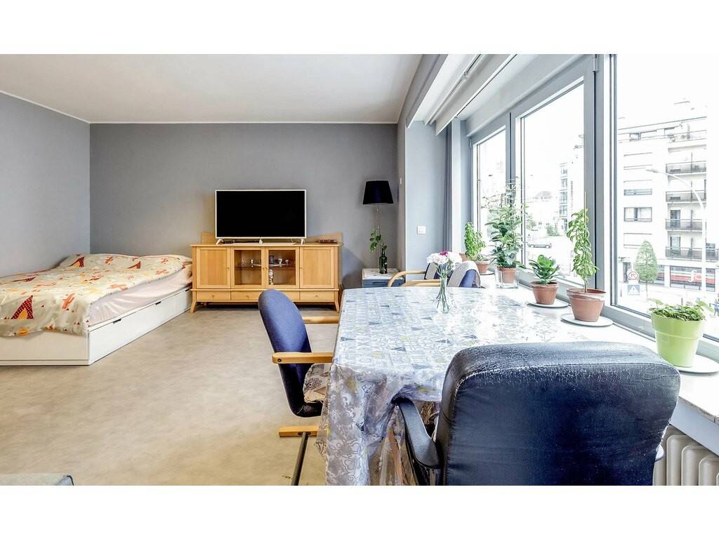 Un hall d’entrée de ± 3 m² avec placards intégrés dessert une salle de bain de ± 4 m² (baignoire, WC, vasque, fenêtre), une spacieuse pièce de vie lumineuse de ± 28 m² bénéficiant de grands rangements intégrés, ainsi qu’une cuisine séparée et équipée de ± 7 m².