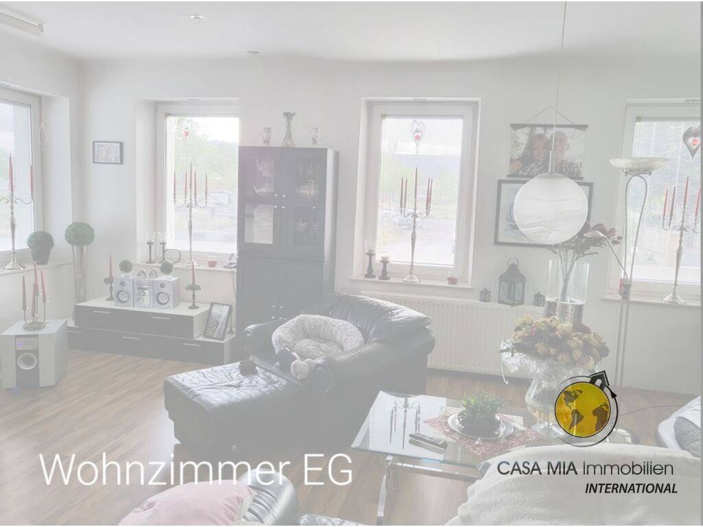 Maison mitoyenne de 320 m² habitables avec jardin et garage ainsi qu'une allée servant de place de parking.