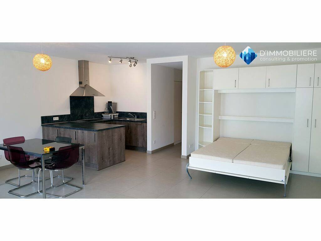 D'Immobilière offers you for rent a furnished studio of +- 50 m² with a lot of comforts and located in a residence of 2013 of the prestigious Greenhill domain in Luxembourg-Dommeldange.