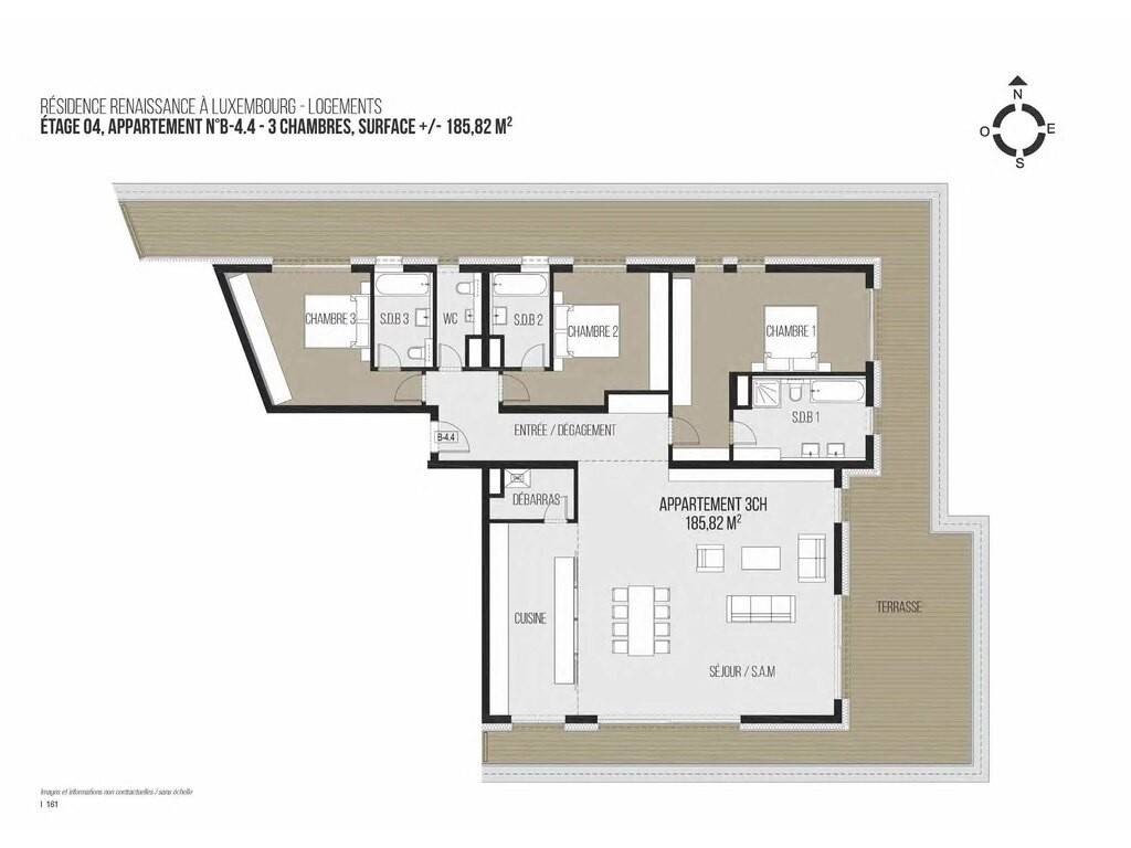 Zum Verkauf steht ein 3-Zimmer-Penthouse im 4. Stock der Renaissance-Residenz in Luxemburg-Belair mit einer 58m2 großen Terrasse, die die Wohnung umgibt.