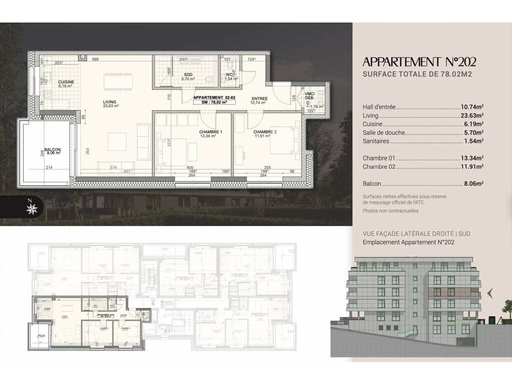 Die Wohnung mit zwei Schlafzimmern befindet sich im zweiten Stock und verfügt über eine Wohnfläche von 78,02 m2 und einen Balkon von 8,06 m2 .
