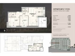 Die Wohnung mit zwei Schlafzimmern befindet sich im zweiten Stock und verfügt über eine Wohnfläche von 61,28 m2 und einen Balkon von 8,74 m2 .