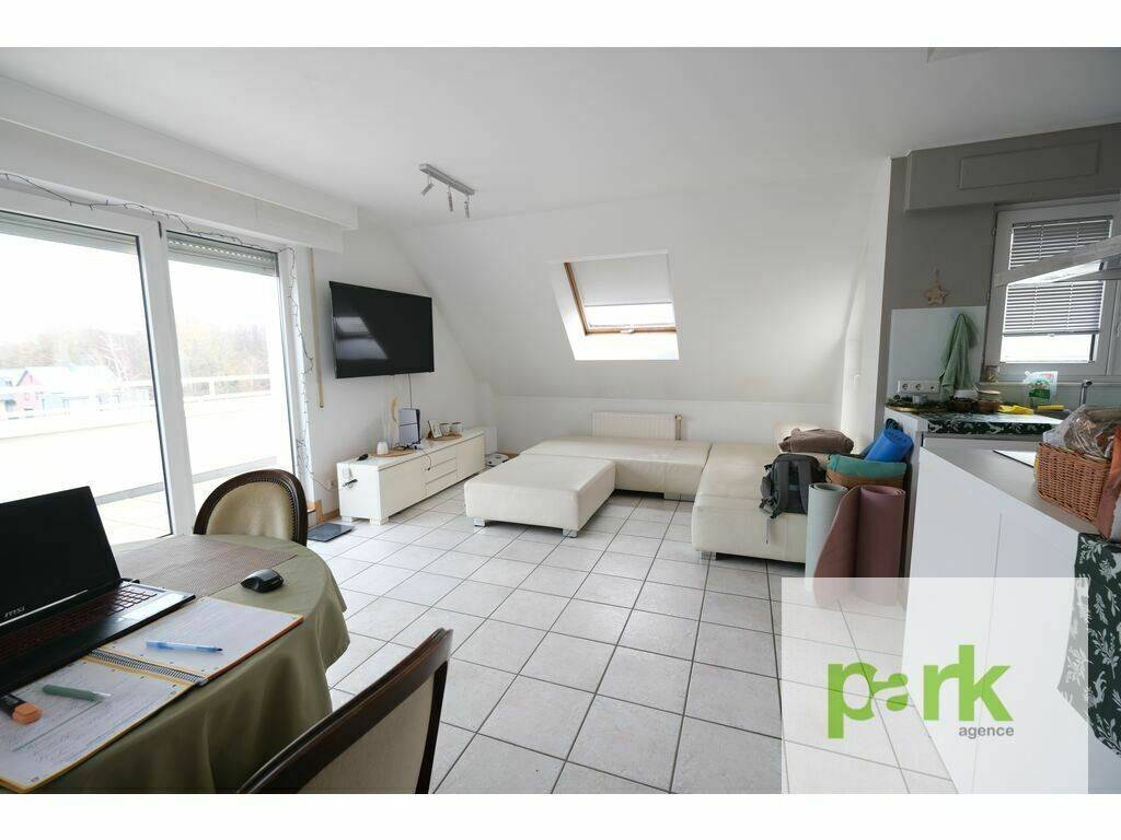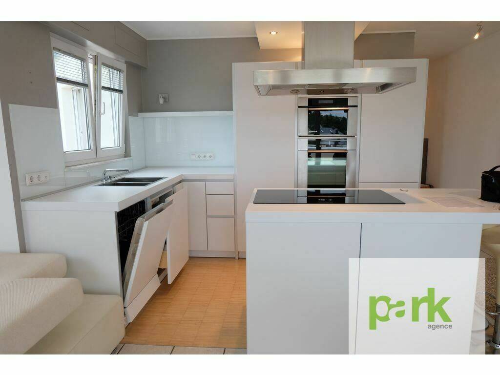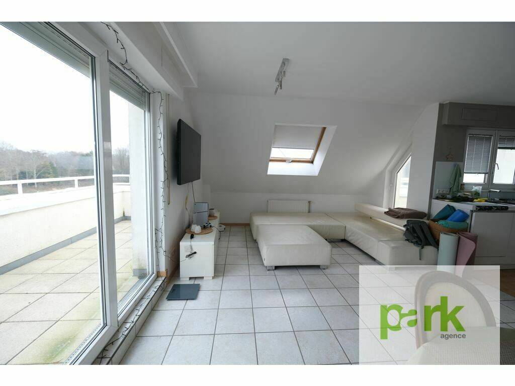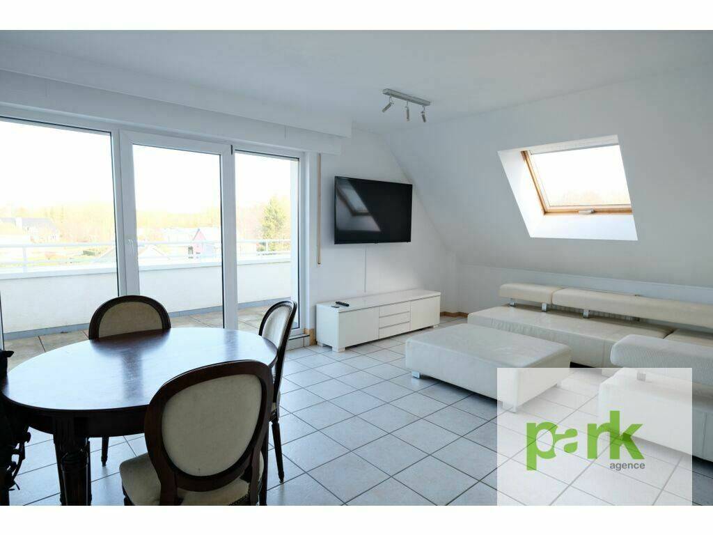 STRASSEN, dans un immeuble très soigné situé à 104 route d’Arlon, bel appartement meublé, style penthouse, de 62 m2, très lumineux, meublé, au 3e étage avec ascenseur et comprenant : entrée, living avec accès terrasse, une cuisine équipée avec îlot central, une chambre à coucher avec accès terrasse placards sur mesure, une salle de douche avec WC, sous les combles (4e étage) une buanderie (commune) avec lave-linge et sèche-linge et pièce privative (cave), un emplacement de parking au sous-sol. L’appartement est actuellement loué.