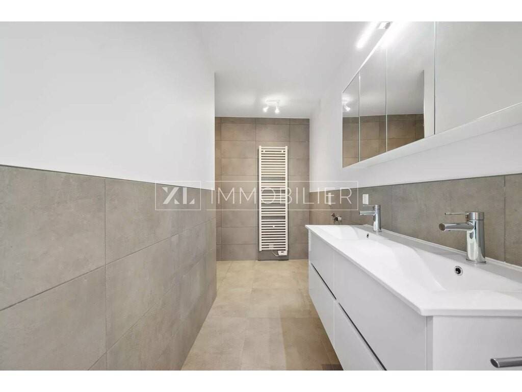 - Une grande salle de douche avec double vasque et emplacement pour machine à laver.