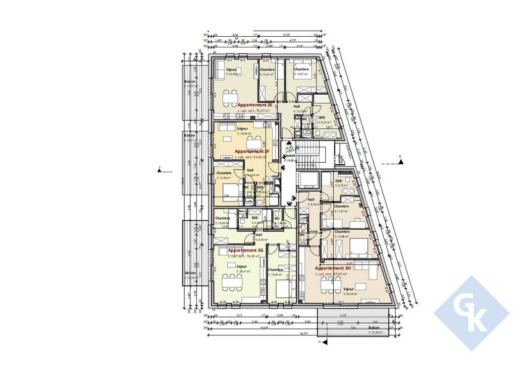 Les superficies varient de 51 m² à 128 m², tous les logements bénéficiant d'un balcon ou d'une terrasse ainsi que d'une cave privative.