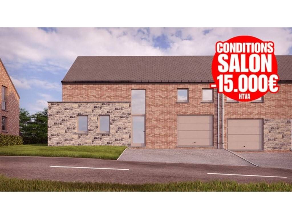 L’intérieur se compose d’un hall d’entrée avec WC, menant à un séjour lumineux de +/- 27 m², ouvert sur une cuisine de +/- 10 m². Un garage/buanderie de 1 voiture de +/- 20 m² complète le rez-de-chaussée.